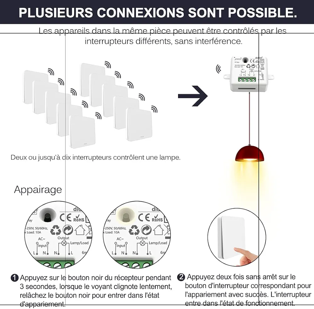✅️ 10 کنترل ممکن: گیرنده را میتوان با حداکثر 10 کنترل از راه دور جفت کرد. میتوان لامپ/دستگاه را با 10 کنترل از راه دور کنترل کرد. 5 سال گارانتی. این محصول دارای گواهینامه CE و RoHS است. عمر مفید آن بیش از 10 سال است. این یک محصول ایمن و کاربردی برای کودکان و پیرمردان است. در خرید آن تردید نکنید!