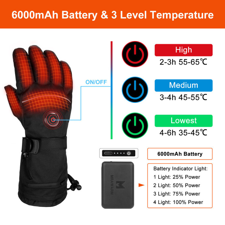 🔥【۳ سطح دما】 دستکشهای گرم شونده قابل شارژ MUTOUHE که با باتری لیتیوم-پلیمر ۶۰۰۰ میلیآمپر ساعتی کار میکنند، به شما کمک میکنند تا راحتترین دما را بین ۳۵ تا ۶۵ درجه سانتیگراد بسته به نیاز خود تنظیم کنید. این دستکش میتواند دستان شما را تا ۶ ساعت در هوای زمستانی گرم نگه دارد. همین حالا آن را مصرف کنید، فردا با دستان سرد خداحافظی کنید!
