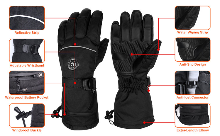 🔥【۵ انگشت و گرمای پشت دست】 انگشتان و کف دستکشهای گرم شونده با سیمهای گرمایشی پوشانده شدهاند. بنابراین دستکشهای گرم شونده قابل شارژ برقی نه تنها دستان شما را به سرعت گرم میکنند، بلکه گردش خون را تسریع کرده و بیماری رینود و غیره را تسکین میدهند.
