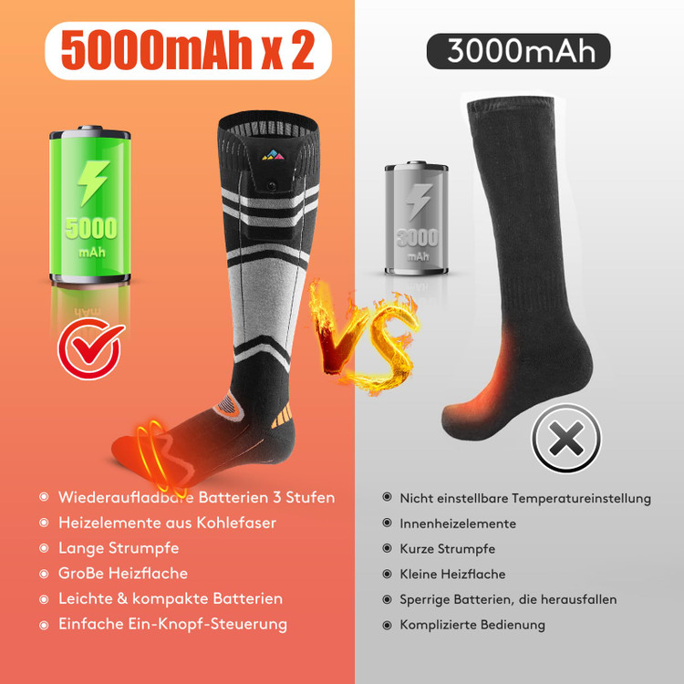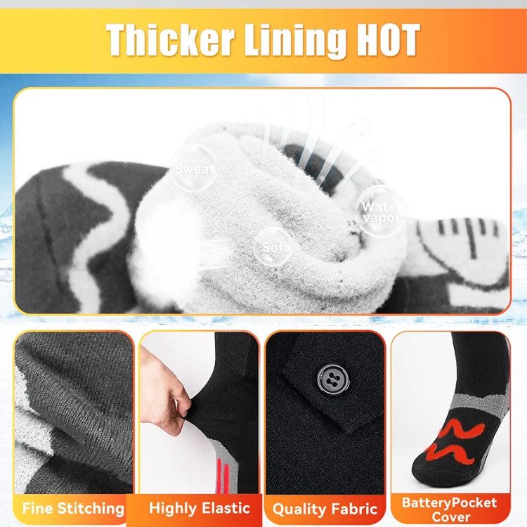 🔥 فناوری گرمایش همه جانبه: جورابهای گرم شونده قابل شارژ از سیمهای گرمایش سه بعدی استفاده میکنند که جورابها را احاطه کرده و توزیع یکنواخت گرما و گرمای کامل پا را تضمین میکنند. این جورابهای گرم شونده با سطح گرمایش بزرگ، 3 برابر گرمتر از سایر جورابها هستند و در عرض 30 ثانیه گرما را فراهم میکنند. در زمستانهای سرد پاهای خود را گرم نگه دارید - هدیهای عالی