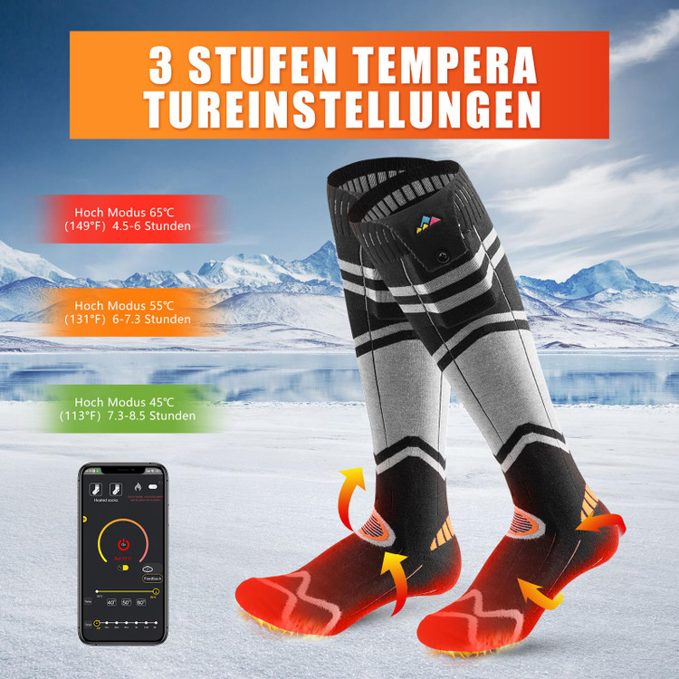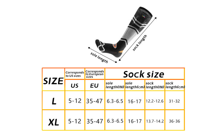 🔥 سه تنظیم حرارت: جورابهای حرارتی دارای باتری، عملکرد گرمایش سریعی را ارائه میدهند. کافیست در صورت نیاز، کلید را فشار دهید تا به سرعت گرم شوند. سطح ۱ معادل ۴۵ درجه سانتیگراد/۱۱۳ درجه فارنهایت (۶.۵ ساعت کارکرد)، سطح ۲ معادل ۵۵ درجه سانتیگراد/۱۳۱ درجه فارنهایت (۵ ساعت کارکرد)، سطح ۳ معادل ۶۵ درجه سانتیگراد/۱۴۱ درجه فارنهایت (۳.۵ ساعت کارکرد) است. این جورابها نه تنها برای فضای داخلی مناسب هستند، بلکه برای فعالیتهایی مانند دوچرخهسواری، اسکی، اسبسواری، ماهیگیری روی یخ، شکار، دویدن و پیادهروی نیز مناسب هستند.