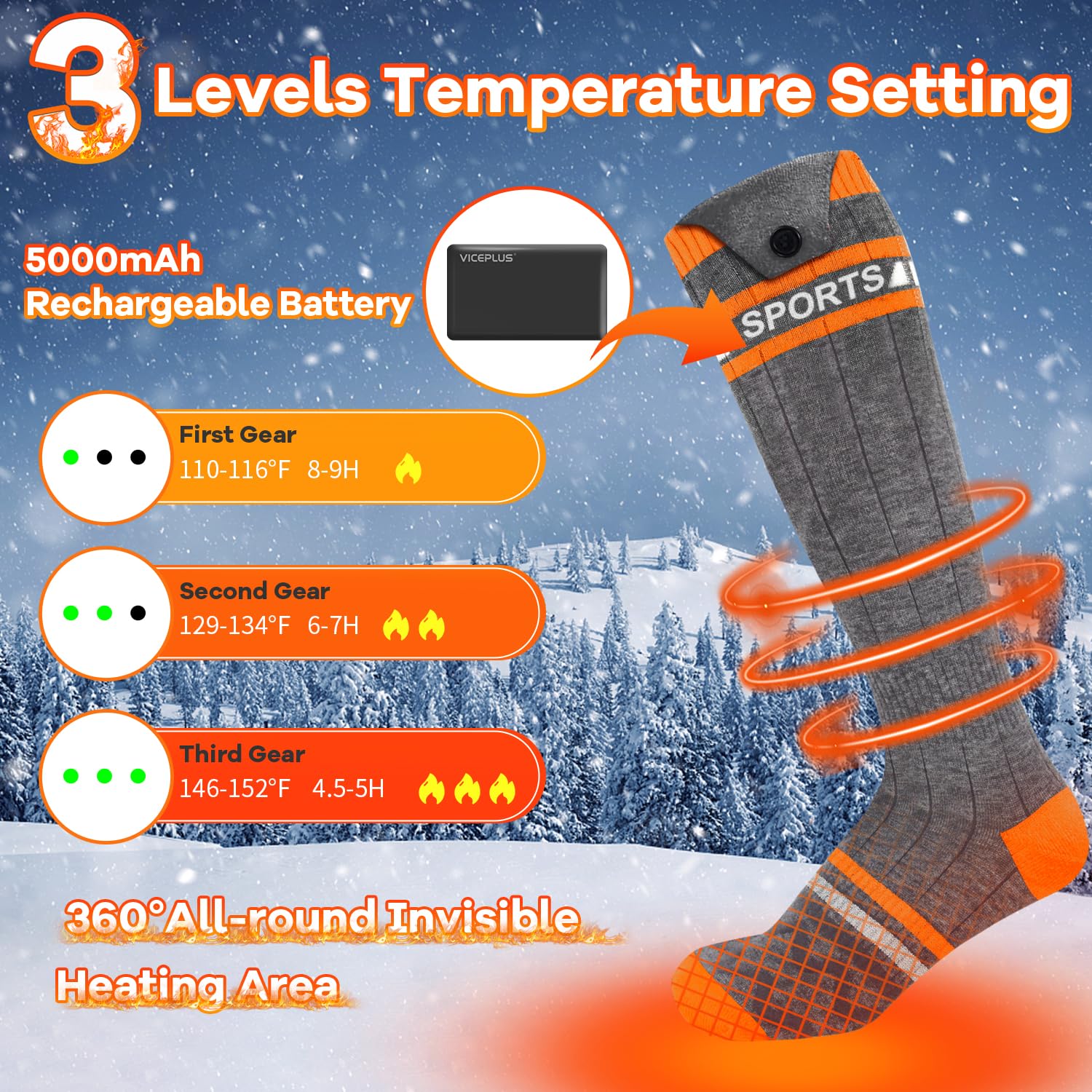 جوراب گرمایشی شارژی برند VICEPLUS باتری ۵۰۰۰ میلیآمپر با کنترل برنامه APP