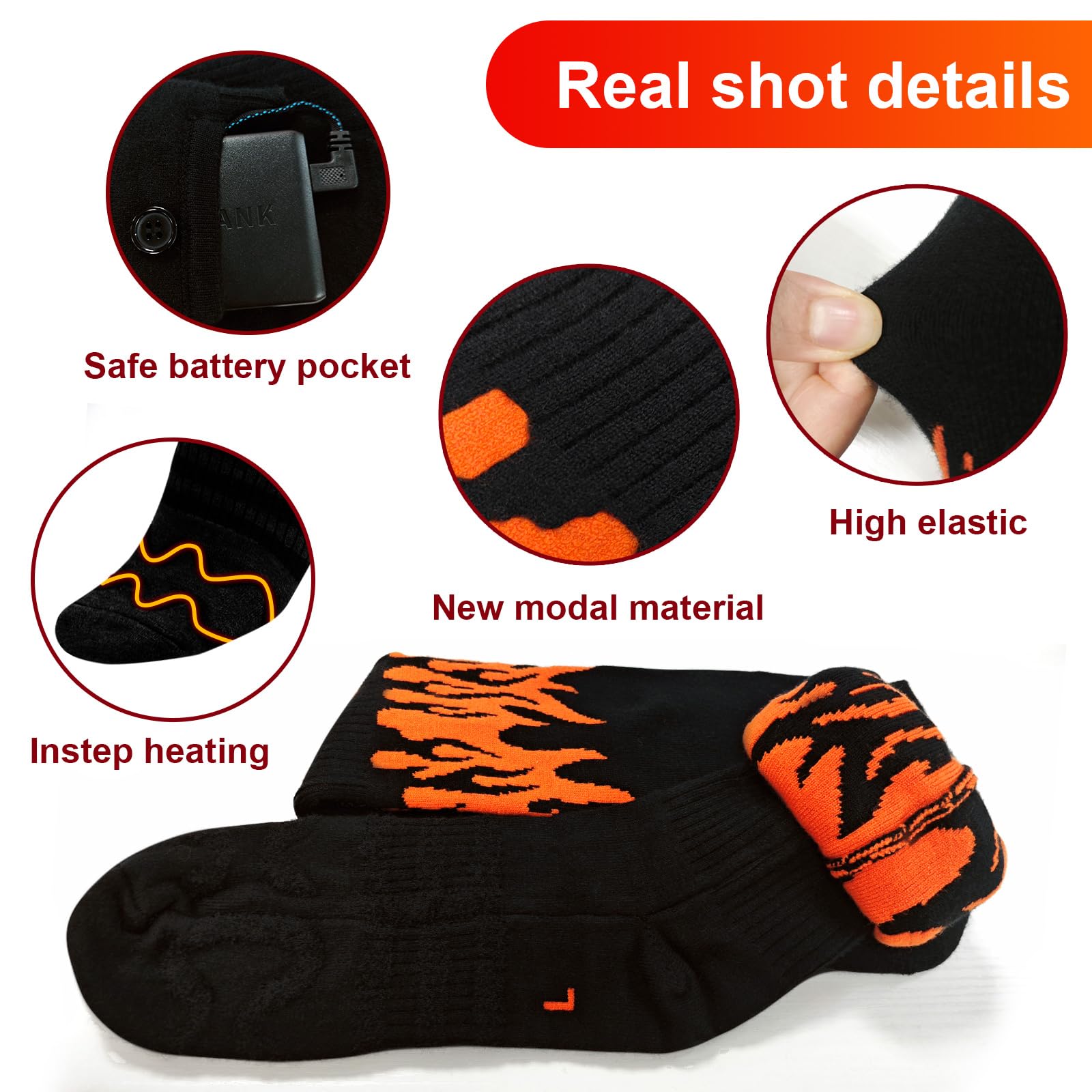 🔥 باتری با ظرفیت بالا: قرارگیری مناسب عناصر گرمایشی، انگشتان پا و کل پا را در حین استفاده گرم نگه میدارد. گردش خون را در پاها تقویت میکند، به طوری که پاها دیگر در زمستان سرد سرد و سفت نباشند. جورابهای برقی مجهز به باتری لیتیوم پلیمری ۲*۵۰۰۰ میلیآمپر ساعتی هستند. جورابهای گرم شونده باتریدار میتوانند گرمای ماندگاری تا ۸ تا ۱۱ ساعت را برای شما فراهم کنند.