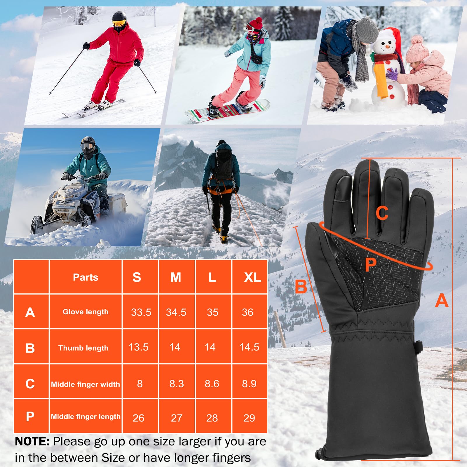 🔥 صفحه لمسی ضد لغزش: کف دست چرمی نرم و انگشتان خمیده دستکشهای اسکی گرمشونده، چسبندگی ضد لغزش، محکم و انعطافپذیری را فراهم میکنند. نوک انگشتان دستکشهای اسکی گرمشونده از جنس صفحه لمسی حساس ساخته شدهاند و به شما امکان میدهند بدون درآوردن دستکشهای گرمشونده به تماسها پاسخ دهید یا در وبسایتها جستجو کنید.