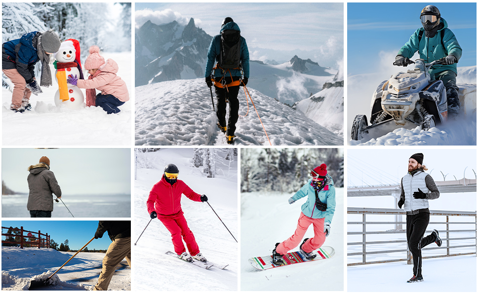 🔥 طیف گسترده کاربردها: این دستکشهای گرمشونده زمستانی برای اسکی، اسنوبرد، کفش برفی، ماشین برفی، شکار، ماهیگیری روی یخ، سورتمهسواری، موتورسواری، پارو کردن، کار در فضای باز و هر کسی که دستان سردی دارد، عالی هستند.