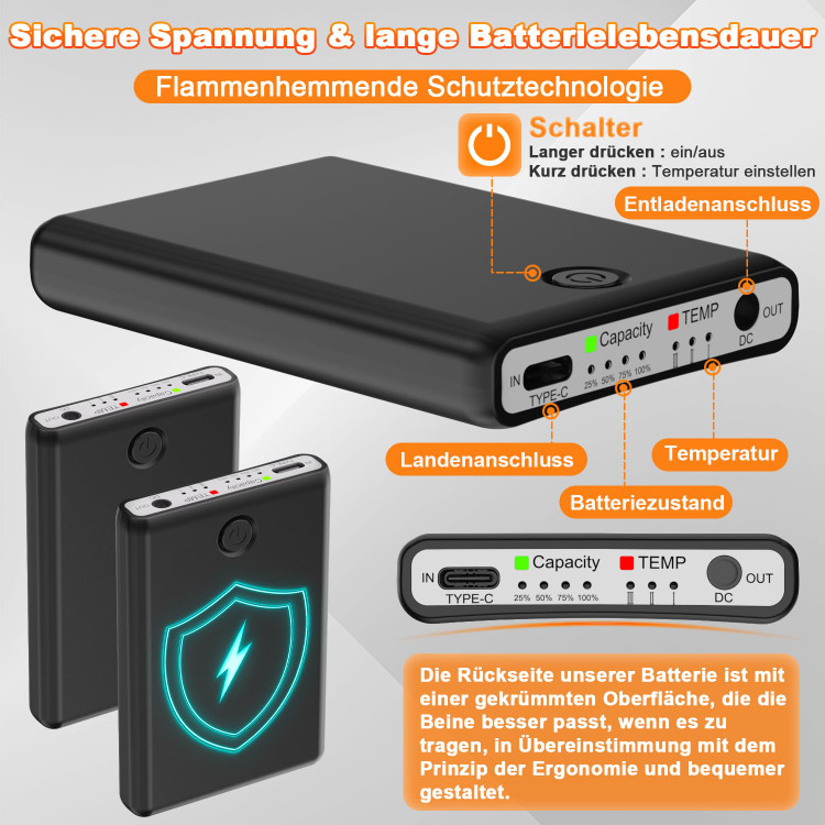 🔥 باتری با کیفیت و 9 ساعت زمان کار جورابهای گرم شونده مردانه با دو باتری 5000 میلیآمپر ساعتی با کیفیت بالا ارائه میشوند که فوقالعاده سبک و فوقالعاده نازک هستند و میتوانند جورابهای برقی را به مدت 9 ساعت در هر بار شارژ گرم نگه دارند.