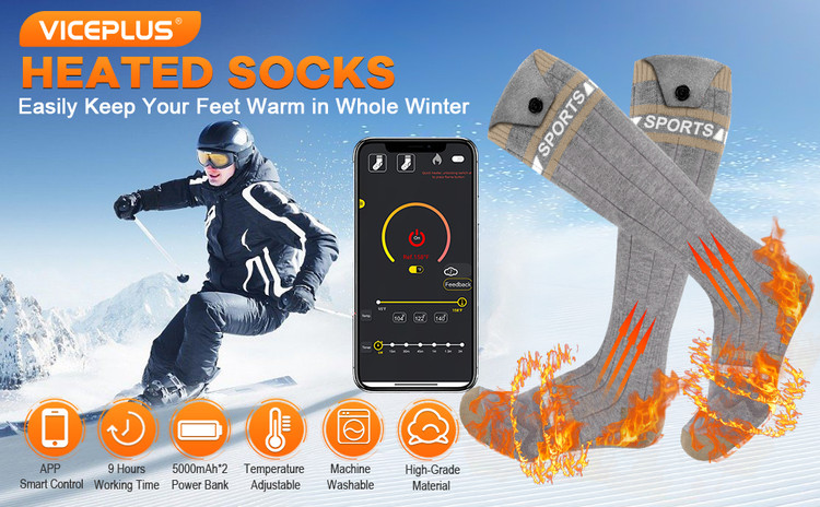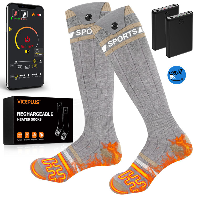 جوراب گرمایشی شارژی برند VICEPLUS باتری ۵۰۰۰ میلیآمپر با کنترل برنامه APP