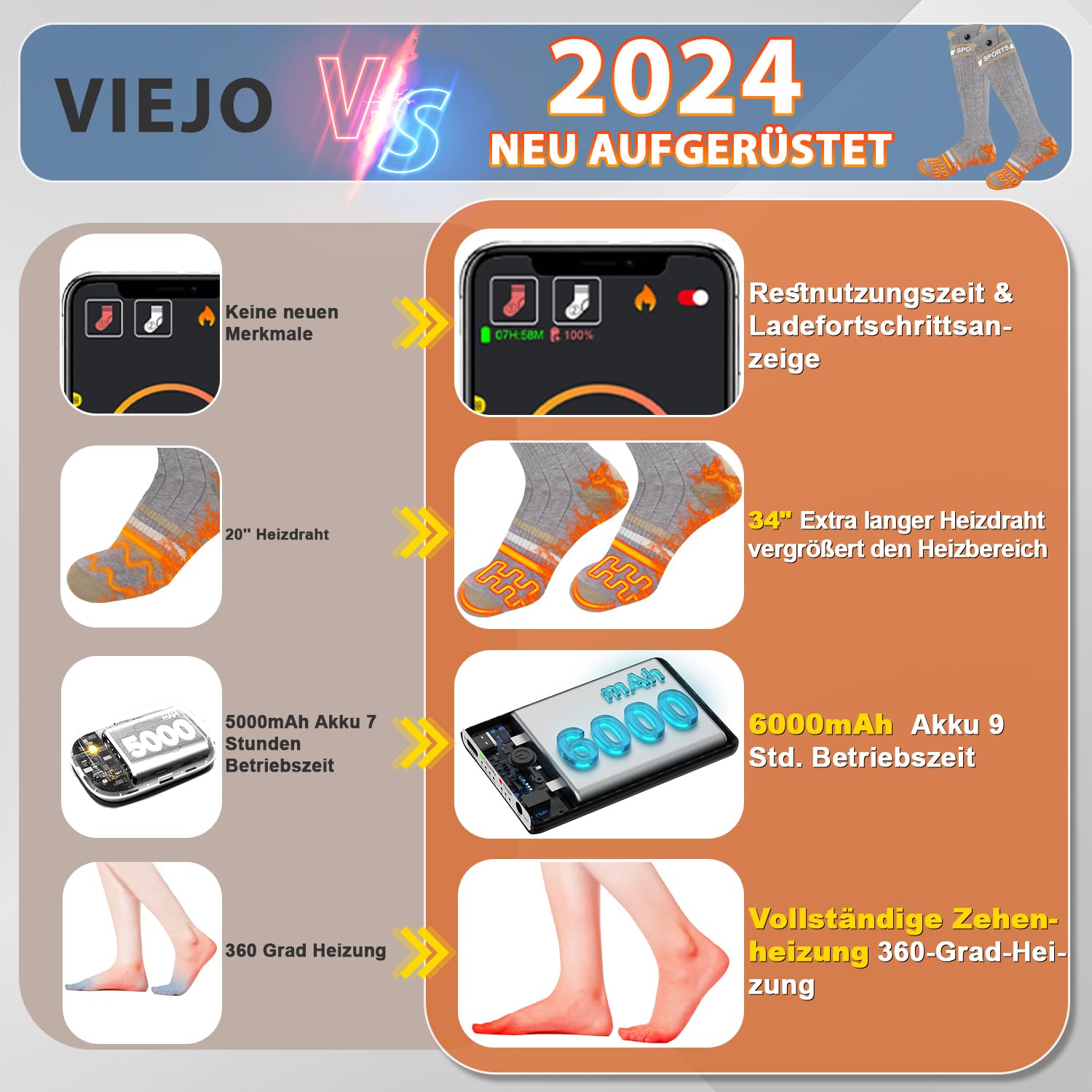 جوراب گرمایشی شارژی برند VICEPLUS باتری ۵۰۰۰ میلیآمپر با کنترل برنامه APP