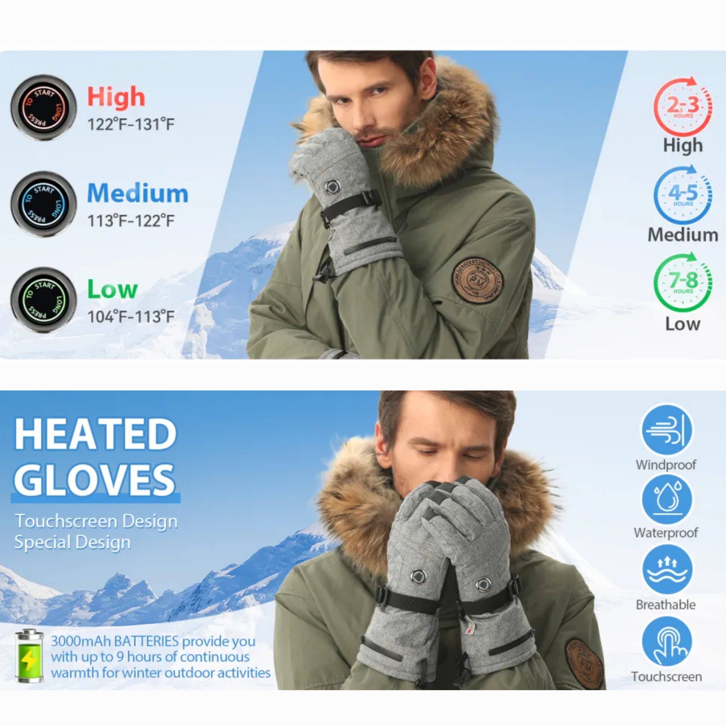 🔥【باتری قابل شارژ 7.4 ولت 3000 میلیآمپر ساعت】 - دستکشهای گرم شونده شامل یک جفت باتری قابل شارژ لیتیوم-یونی هستند که پس از شارژ کامل میتوانند 5 تا 10 ساعت دوام بیاورند و دارای 3 حالت تنظیم دما هستند. دستکشهای زمستانی عالی برای فعالیتهای داخل و خارج از منزل. به هوای تازه بروید و از زمستان نهایت لذت را ببرید!