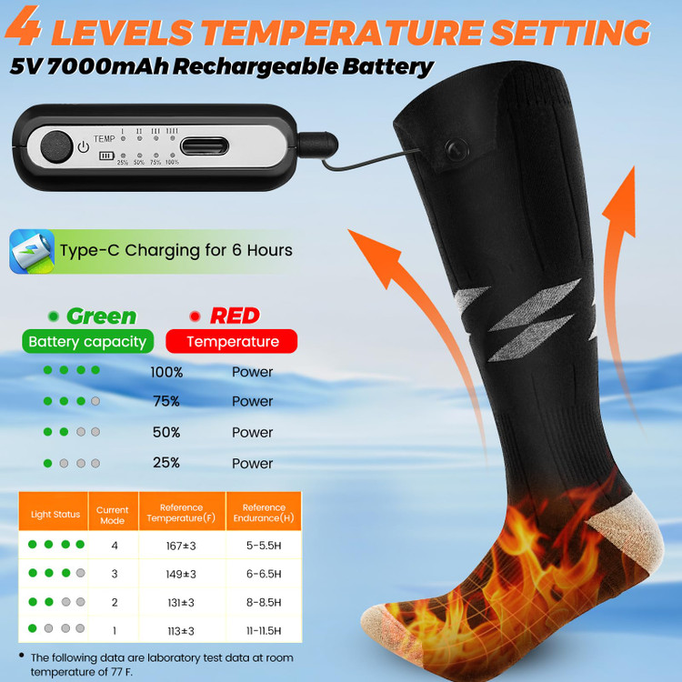 جورابهای هوشمند گرمایشی شارژی با باتری ۷۰۰۰ میلیآمپر برای آقایان و خانمها
