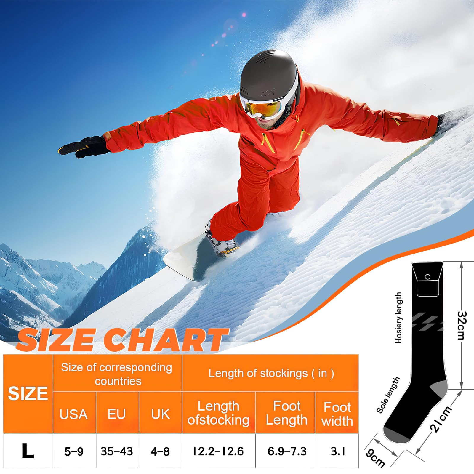 🔥【پارچه گرم با کیفیت بالا】مناسب برای اکثر آقایان و خانمها. جدول سایزبندی به شرح زیر است: سایز مناسب برای سایزهای: ۴-۸ (بریتانیا)، ۳۵-۴۳ (اتحادیه اروپا). جورابهای لوله بلند میتوانند ساق پا را بپوشانند، کاملاً هماهنگ، گرم و شیک! جورابهای گرمایشی با ۴ لایه پارچه طراحی شدهاند، سیم گرمایش الکتریکی در پارچه پنهان شده و با جورابها یکپارچه شده است، قوس پا، مچ پا و انگشتان پای شما را کاملاً پشتیبانی میکند، هیچ احساس جسم خارجی ایجاد نمیکند و پوشیدن آن راحت است. قابلیت شستشو با ماشین لباسشویی و دست را دارد.