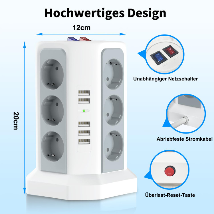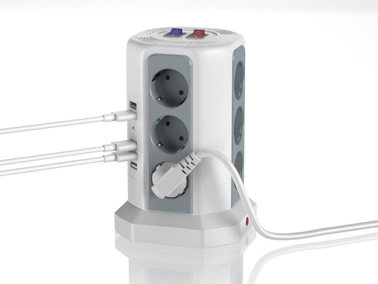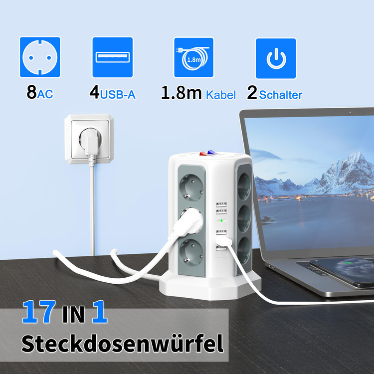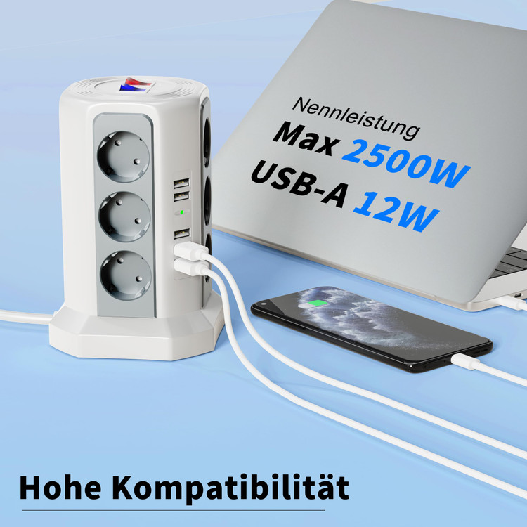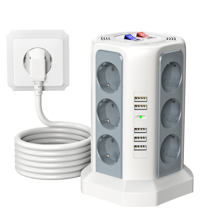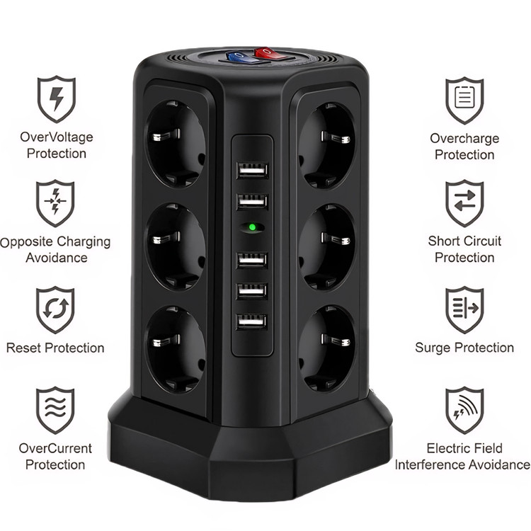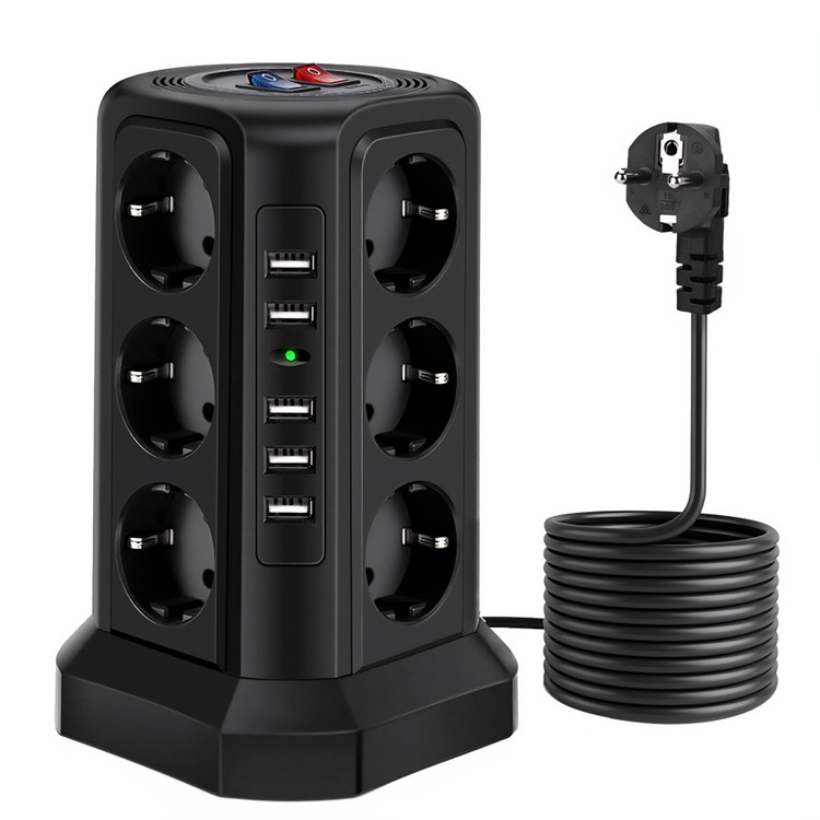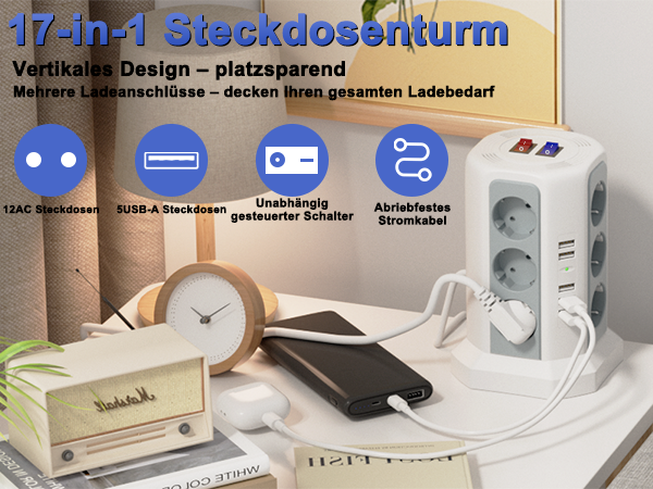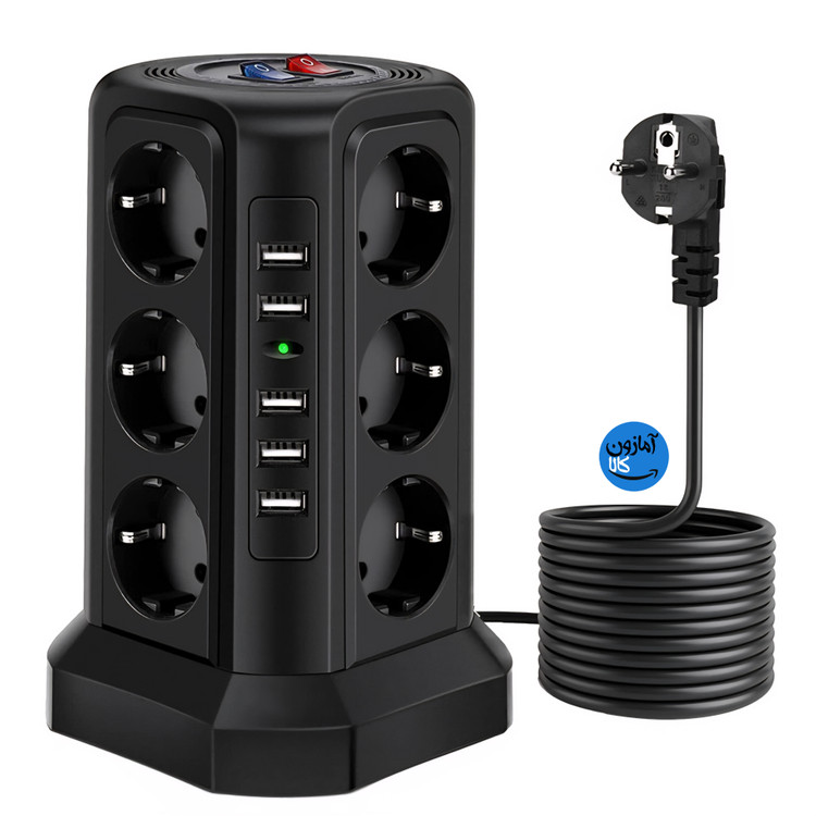 ✅️ منبع تغذیه ۱۷ طرفه: این چندراهی برق، ۱۲ پریز دیواری و ۵ پورت شارژ USB (حداکثر جریان کل ۲.۴ آمپر) را با هم ترکیب میکند - ایدهآل برای شارژ همزمان گوشیهای هوشمند، تبلتها و راهاندازی لوازم خانگی بدون شلوغی آداپتور.