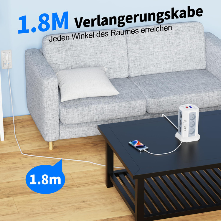 ✅️ جایگذاری انعطافپذیر: این چندراهی برق با پورتهای USB با کابل ۱.۸ متری خود، به راحتی به پریزها حتی پشت مبلها یا میزها میرسد - مناسب برای تلویزیونها، لامپها یا لوازم برقی پرمصرف مانند مایکروویو.