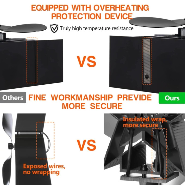 🔥 【محافظت در برابر گرمای بیش از حد】 پنکه شومینه اجاق چوبی دارای یک دستگاه ایمنی دو فلزی در پایه است. هنگامی که دمای سطح از حدود 300 درجه بالاتر می رود، به آرامی جلوی فن را بلند می کند تا از TEG و موتور محافظت کند. با کاهش دمای سطح، فن به طور خودکار بازیابی می شود.