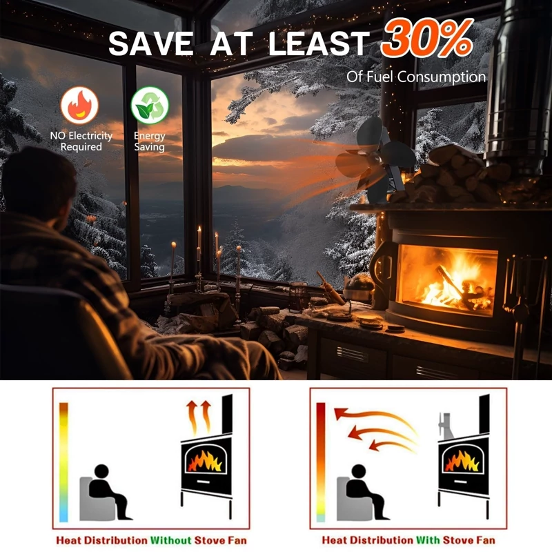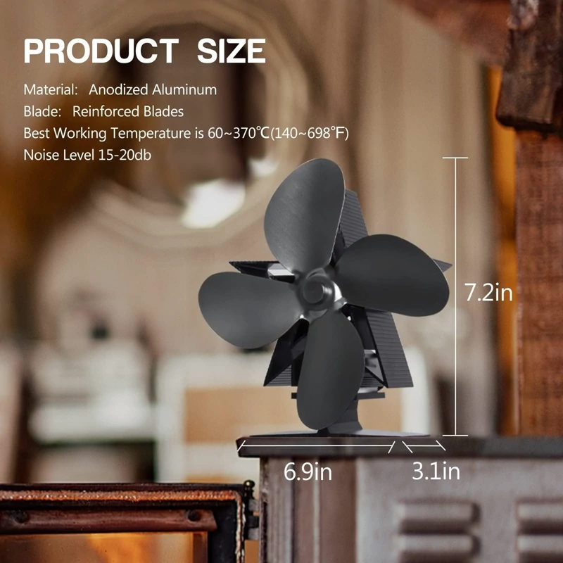 🔥【پنکه اجاق چوبی 4 تیغه】پنکه اجاق گاز با گرمای شومینه یا اجاق چوبی شما تغذیه می شود، بدون نیاز به باتری یا برق. هرچه اجاق گاز داغ تر باشد، فن اجاق گاز سریعتر می چرخد. پایه و تیغه فن از آلومینیوم آنودایز شده ساخته شده است که در برابر سایش مقاوم است و رسانایی حرارتی خوبی دارد. 4-تیغه حجم هوای بیشتری را فراهم می کند و هوای گرم را به صورت افقی در اطراف منحرف می کند.
