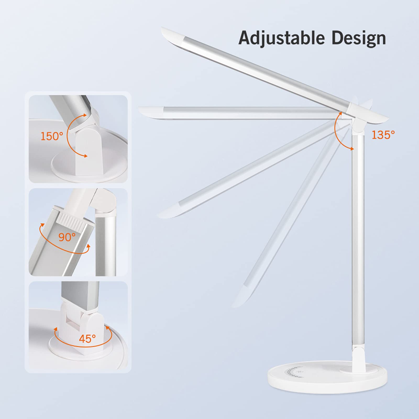 ✅️ چراغ مطالعه 【تنظیم چند زاویهای و چند جهتی】: این چراغ رومیزی LED دارای بازوی قابل تنظیم، بالا و پایین، چپ و راست است و در صورت نیاز به نور در زاویه مناسب، احساس راحتی میکنید.