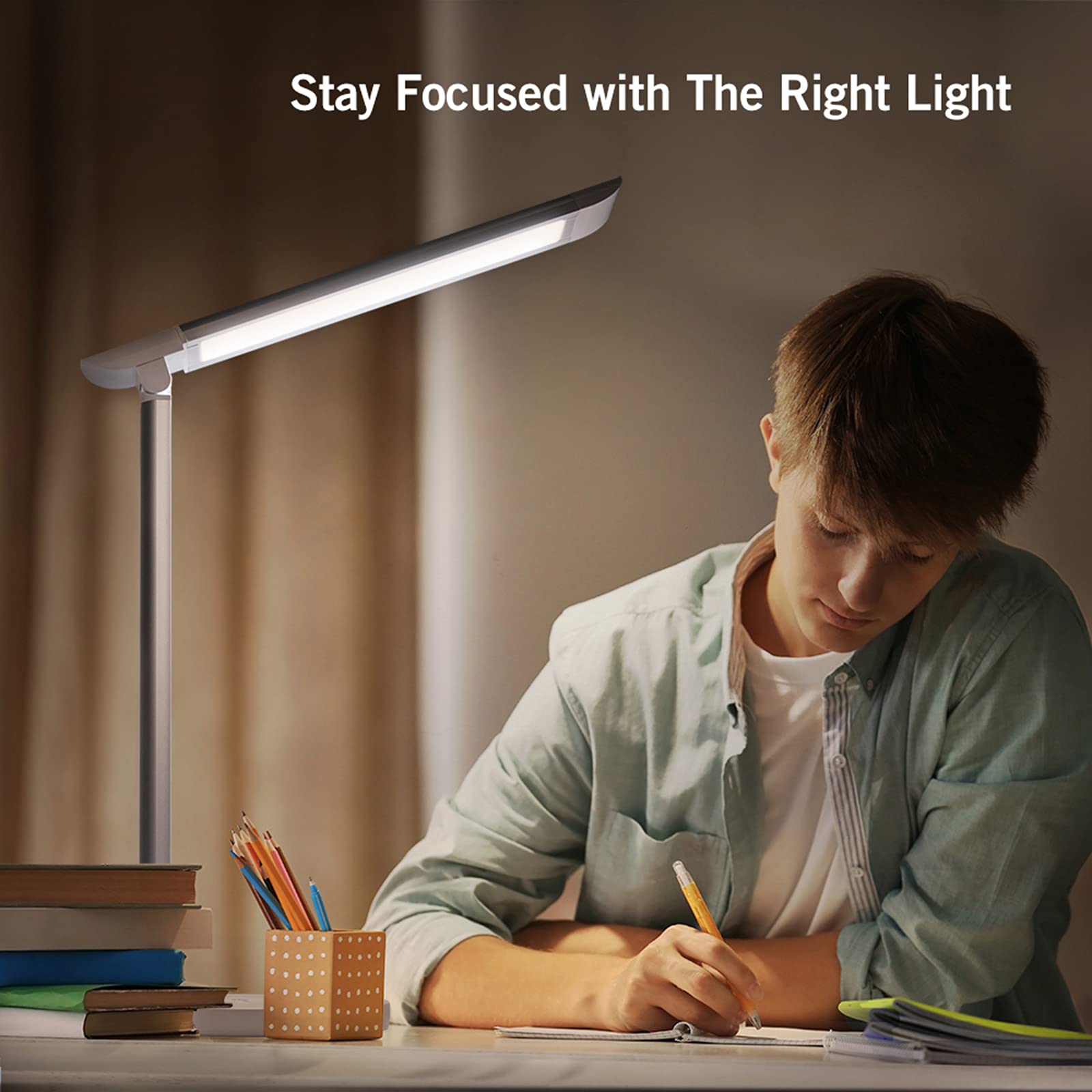 ✅️ مناسب برای چشم: این چراغ رومیزی، نوری ملایم و بدون سوسو زدن ساطع میکند که برای کار، مطالعه، مطالعه یا استراحت ایدهآل است.