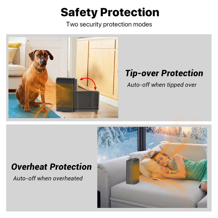 🔥 حفاظتهای ایمنی چندگانه: بخاری فضای برقی دارای محافظت در برابر واژگونی و گرمای بیش از حد و دوشاخه ایمنی است. ساخته شده با مواد مقاوم در برابر شعله V-0 برای اطمینان از حداکثر ایمنی در همه جنبهها، انتخابی عالی برای خانوادههای دارای کودک و حیوانات خانگی است.