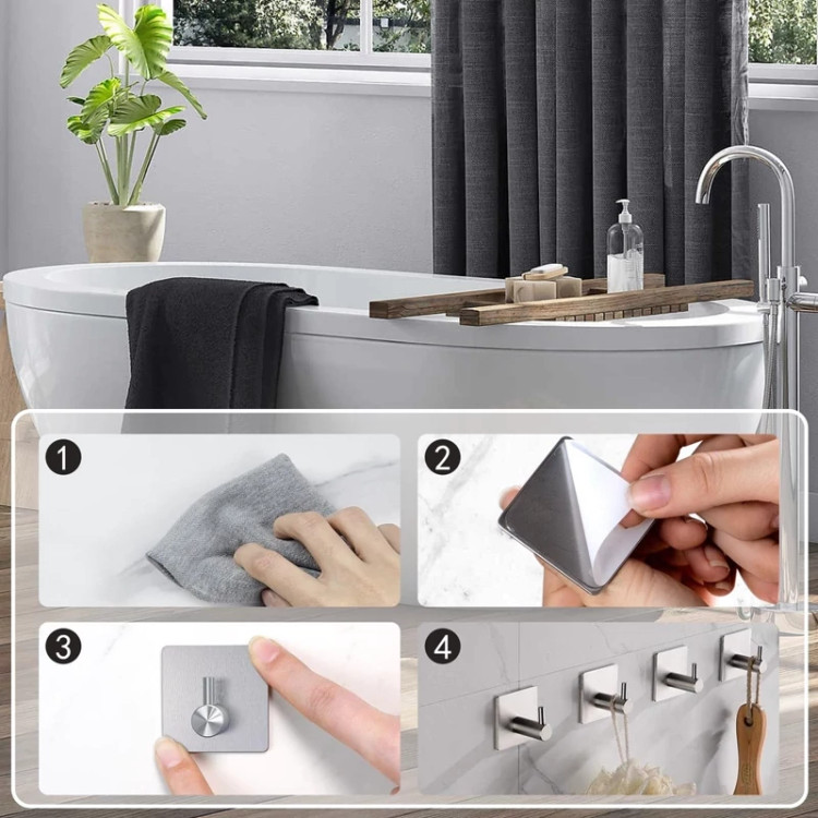 📌【قفسه حوله ای بدون سوراخ کردن】قلاب های خود چسب بدون حفاری به راحتی نصب می شوند و به دیوارهای شما آسیب نمی رسانند. دیوار باید قبل از استفاده خشک و تمیز نگه داشته شود، چسب را جدا کرده و قلاب چسب را روی سطحی صاف و صاف ثابت کنید. برای اطمینان از ایمن بودن قلاب را به آرامی فشار دهید