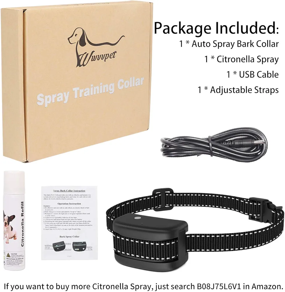 قلاده ضد پارس سگ اسپری سیترونلا، شامل اسپری سیترونلا (ایمن برای انسان مخصوص سگها)