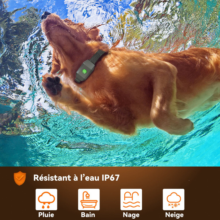 🐶 قلاده ضد آب: این قلاده دارای درجه ضد آب IP67 است، حتی اگر سگ قلاده را بپوشد، سگها میتوانند آزادانه در استخر، برف، دریا یا باران بازی کنند. توجه: ریموت کنترل ضد آب نیست.