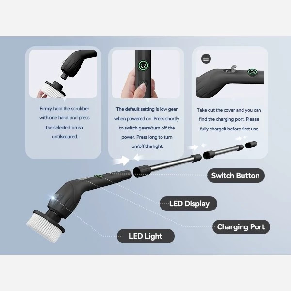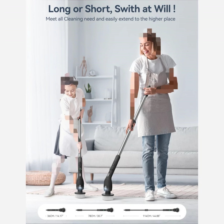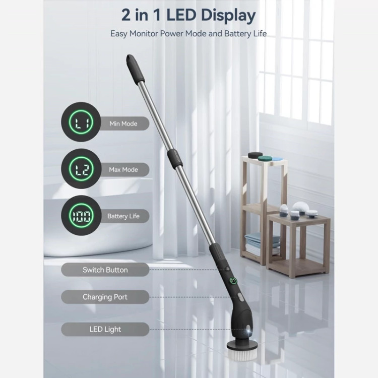 🧹🫧 دسته اکستنشن قابل تنظیم: برای دسترسی به مناطقی که دسترسی به آن سخت است، برس تمیزکننده شارژی دارای دسته قابل تنظیم است. این ویژگی به شما این امکان را می دهد که طول دسته را به دلخواه خود سفارشی کنید و از تمیز کردن راحت و راحت حتی در فضاهای تنگ اطمینان حاصل کنید. اسکرابر چرخشی برقی چه در گوشههای بلند و چه نقاط پایین، انعطافپذیری لازم برای تمیز کردن کامل را فراهم میکند.