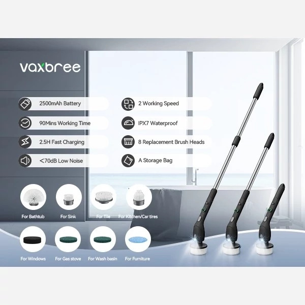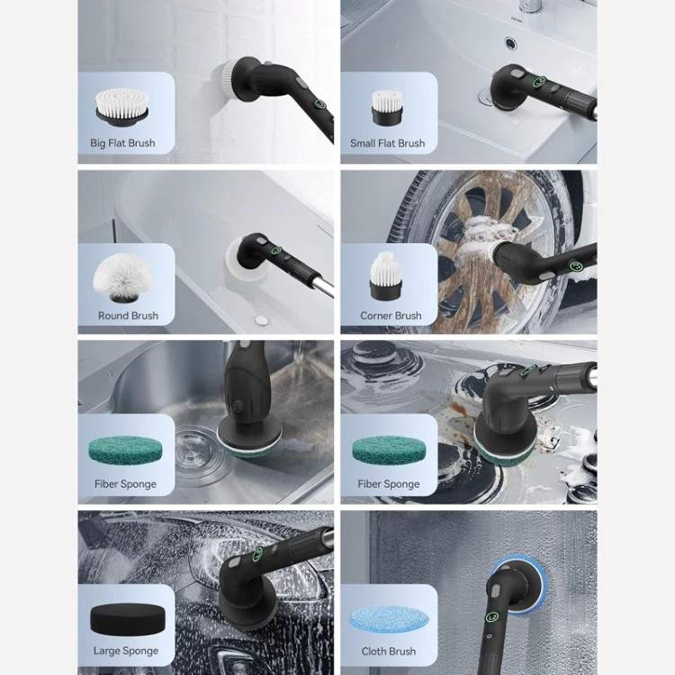 🧹🫧 8 سر برس قابل تعویض: اسکرابر حمام شامل 8 سر برس مختلف است که هر کدام به طور خاص برای مقابله با سطوح مختلف تمیزکننده مانند کاشی، وان، سینک و غیره طراحی شده اند. این سرهای برس قابل تعویض تطبیق پذیری را ارائه می دهند و تضمین می کنند که می توانید به طور موثر هر گوشه و کنار حمام خود را تمیز کنید.
