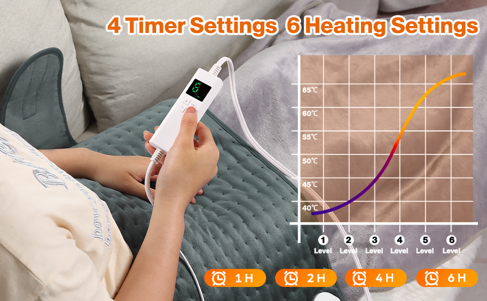 🔥【تنظیم دما و تنظیم زمان】پد حرارتی برقی دارای 6 عملکرد تنظیم دما است، محدوده دما از 104 درجه فارنهایت تا 149 درجه فارنهایت (40 درجه سانتیگراد تا 65 درجه سانتیگراد) است و گرمایش سریع است که میتواند نیازهای گرمایشی مختلف را برآورده کند. محدوده تنظیم زمان 4 سطحی (1H/2H/4H/6H) که میتوان آن را زمانبندی کرد و استفاده از آن ایمنتر است. پد حرارتی دارای یک پنل کنترل است که کار با آن آسان است.