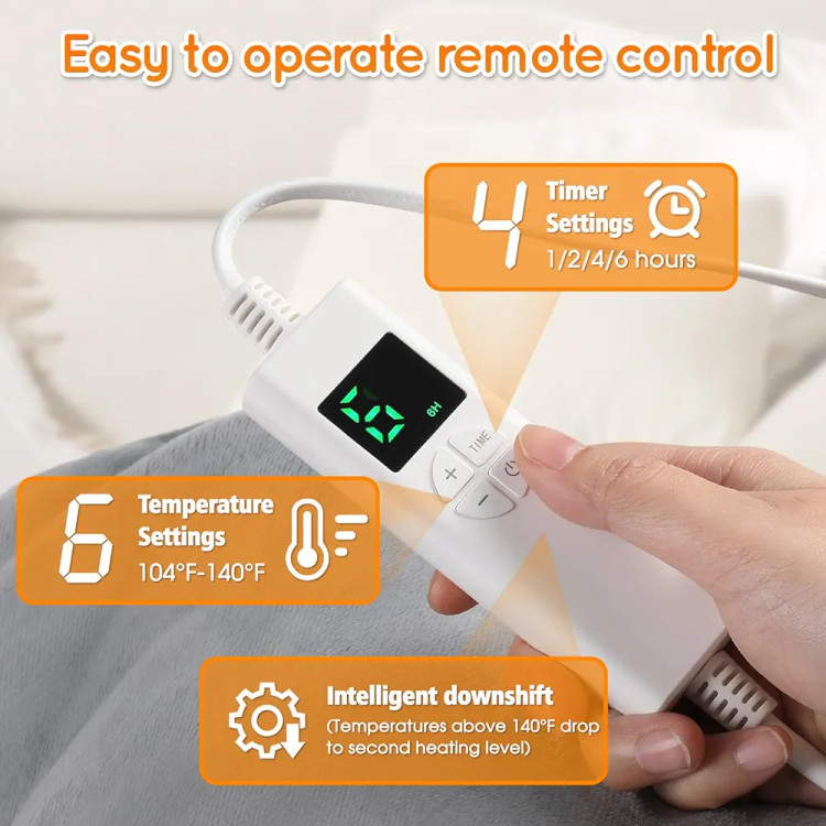 🔥 6 تنظیم گرما و 4 تایمر: پد گرمکن با سیم برق 2.6 متری عرضه میشود و دارای 6 تنظیم گرما، محدوده دما از 40 درجه سانتیگراد تا 60 درجه سانتیگراد و 4 تنظیم تایمر (1 ساعت/2 ساعت/3 ساعت/4 ساعت) است. پد گرمکن با خاموش شدن خودکار و کنترل پنل، کار با آن آسان است و میتوان آن را در هر زمانی تنظیم کرد.