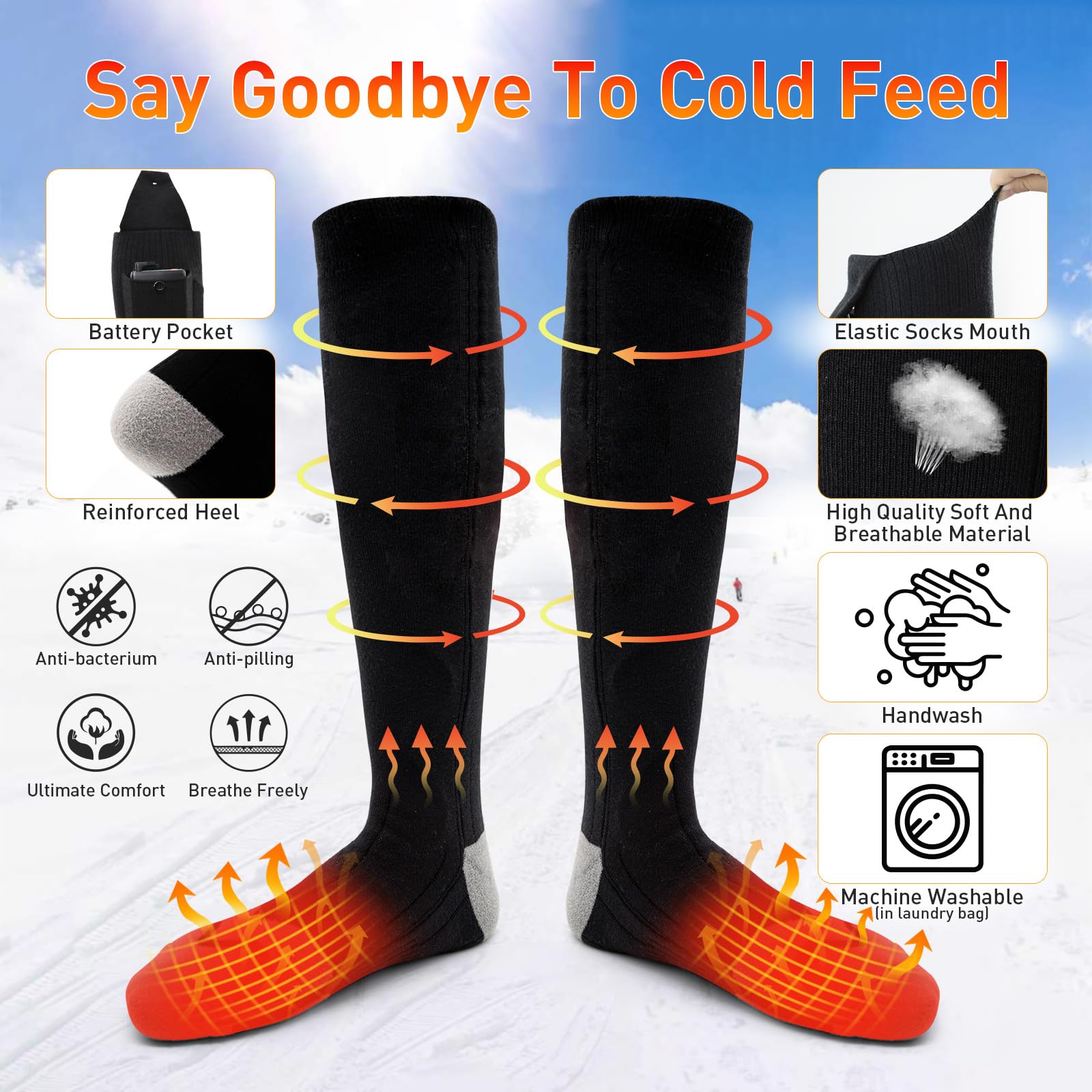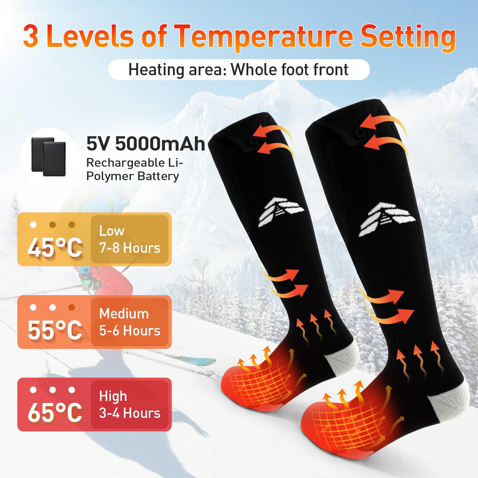 🔥 [باتری با ظرفیت بالا ۵۰۰۰ میلیآمپر ساعت] جورابهای گرمایشی برقی با یک باتری ۵ ولتی ۵۰۰۰ میلیآمپر ساعت با ظرفیت بالا تغذیه میشوند و میتوانند به طور مداوم به مدت ۳ تا ۷ ساعت کار کنند. پس از فشار طولانی مدت دکمه باتری به مدت ۳ ثانیه، چراغ قرمز روشن میشود و جورابهای گرمایشی برقی به حالت گرمایش تغییر میکنند و به سرعت گرما تولید میکنند تا شما را گرم نگه دارند.