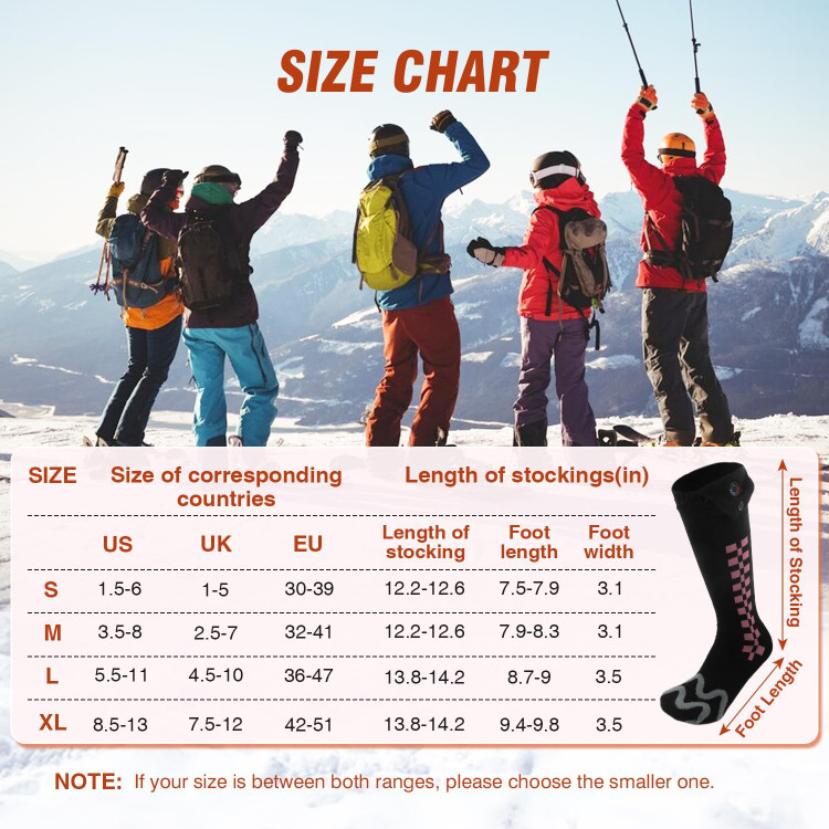 🌞【مناسب برای آقایان و خانمها】جورابهای گرم شونده برای اکثر آقایان و خانمها مناسب هستند. جدول سایزبندی به شرح زیر است: سایز M برای سایز: ۷.۹-۸.۳ اینچ، سایز L برای سایز: ۸.۷-۹ اینچ، سایز XL برای سایز: ۹.۴-۹.۸ اینچ. این جوراب گرم شونده بسیار انعطافپذیر و به اندازه کافی بلند است که میتوان آن را با کفشهای کتانی، کفشهای چرمی، چکمه و چکمههای بارانی پوشید، این جوراب برای شکار، ماهیگیری، کمپینگ، پیادهروی و کار در فضای باز عالی است، همچنین برای افرادی که از آرتروز و گردش خون ضعیف رنج میبرند نیز عالی است.