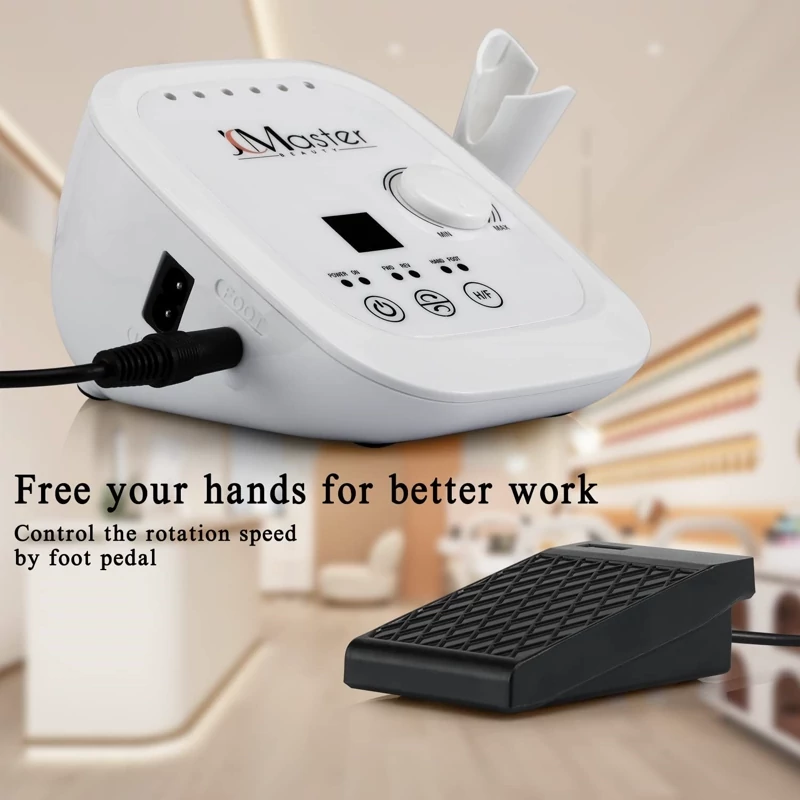 【سرعت قابل تنظیم】JCMaster302-کاش ناخن سفید برای ناخن ژل با حداکثر 35000 دور در دقیقه اما بی صدا. پدال پا سرعت را کنترل می کند و دستان شما را آزاد می گذارد. این به شما اجازه می دهد تا روی کوتاه کردن ناخن های خود تمرکز کنید. نکته: توصیه می کنیم افراد مبتدی برای عادت به دستگاه با سرعت کم شروع کنند و سپس به تدریج سرعت را افزایش دهند.