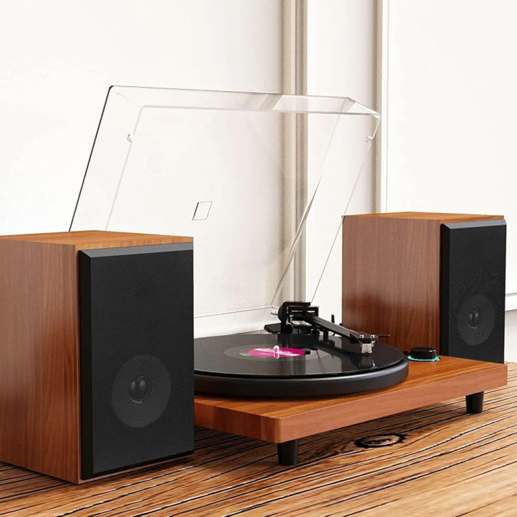 گرامافون چوبی رومیزی بلوتوثی با سیستم HiFi با دو بلندگوی جداشونده