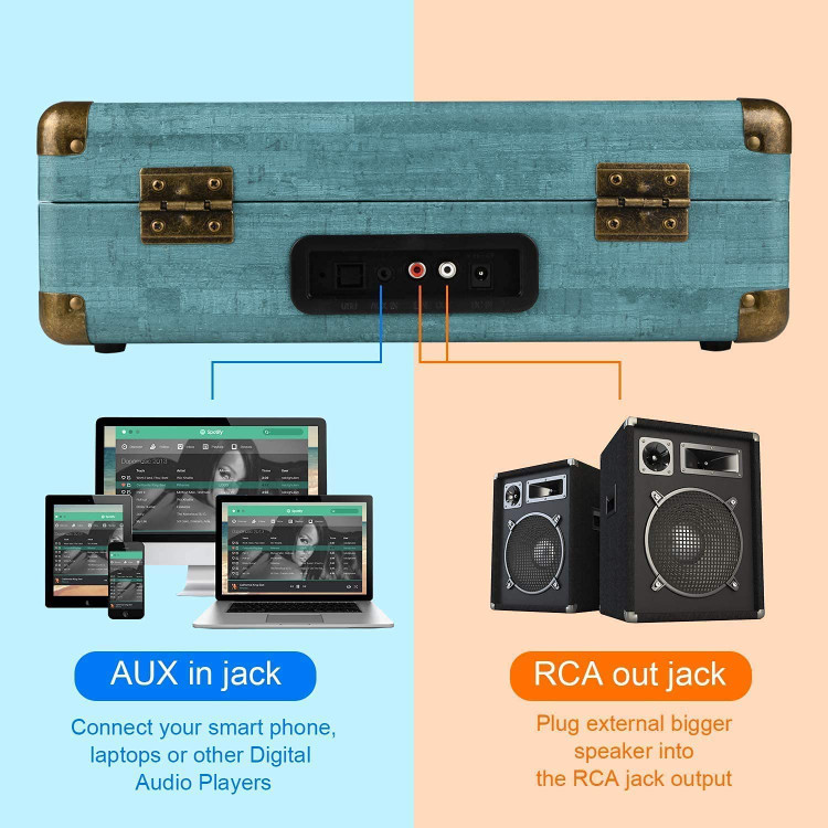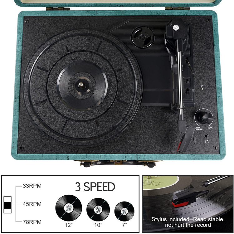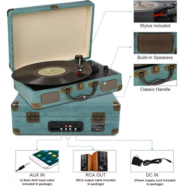 ✅️【پخشکننده صفحه چمدانی قدیمی】 چمدان قدیمی با دسته حمل آسان، طراحی شیک چمدانی، میتوانید قاب را ببندید و از ورود گرد و غبار جلوگیری کنید یا فقط قفل را ببندید و مانند یک چمدان کوچک آن را بردارید و به جای دیگری ببرید. این گرامافون با بلوتوث دارای نمای بیرونی بافتدار زیبا است و برای هر محیطی مناسب است.
