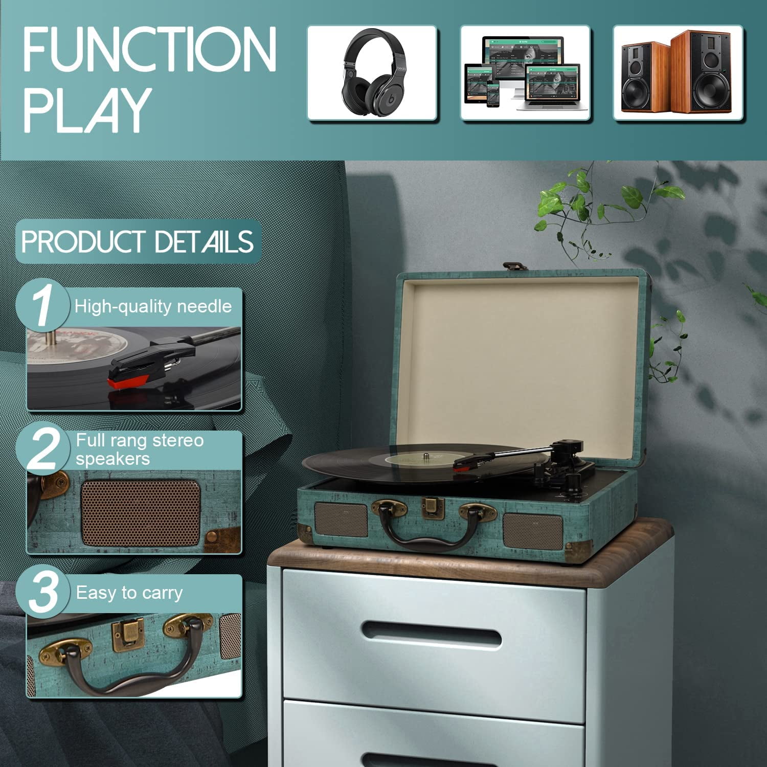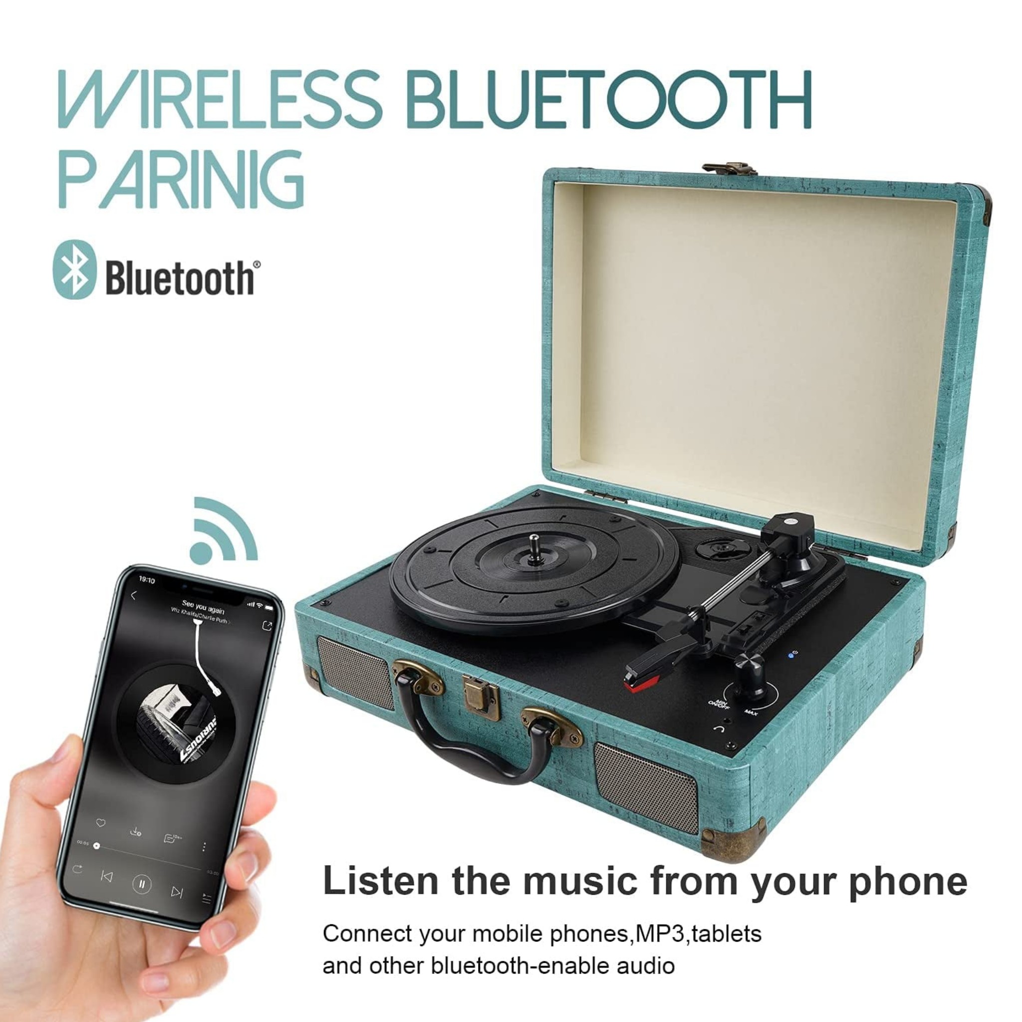 ✅️【پخشکننده صفحه چمدانی قدیمی】 چمدان قدیمی با دسته حمل آسان، طراحی شیک چمدانی، میتوانید قاب را ببندید و از ورود گرد و غبار جلوگیری کنید یا فقط قفل را ببندید و مانند یک چمدان کوچک آن را بردارید و به جای دیگری ببرید. این گرامافون با بلوتوث دارای نمای بیرونی بافتدار زیبا است و برای هر محیطی مناسب است.