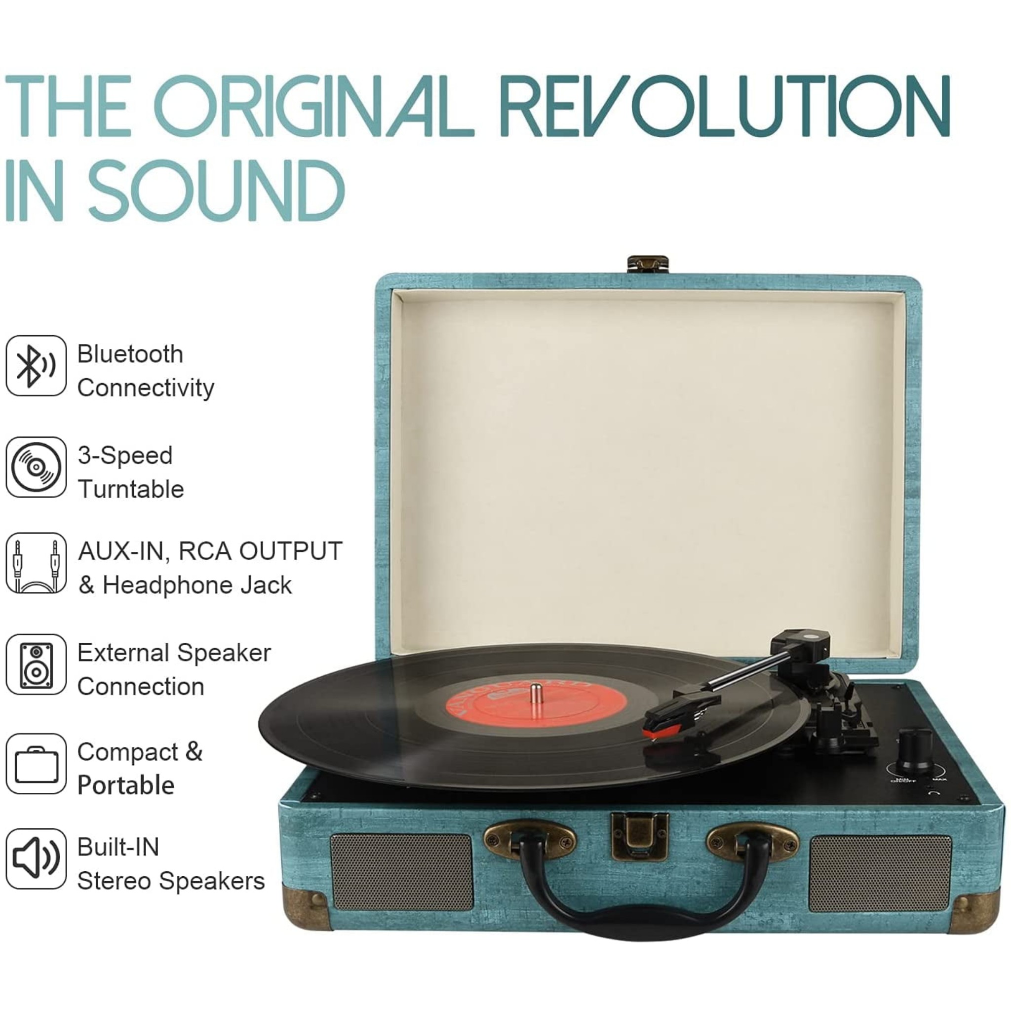 گرامافون وینل چمدانی بلوتوثی با بلندگوی استریو