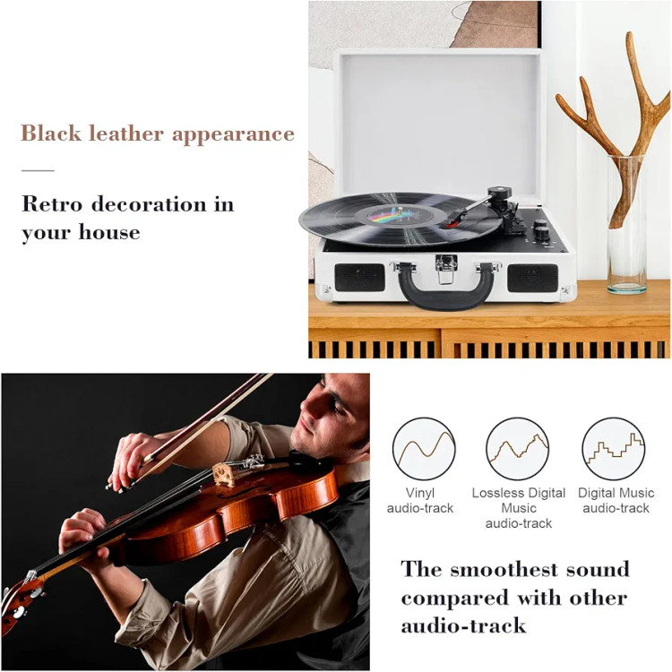 ✅️【پخشکنندهی صفحهی وینیل بلوتوث】 پخش صدای MP3/گوشی هوشمند از طریق بلندگوی بلوتوث داخلی. اتصال قوی انتقال بیسیم بلوتوث، با سیگنال پایدارتر و سریعتر، به شما این امکان را میدهد که از موسیقی مورد علاقهتان آزادانهتر لذت ببرید.