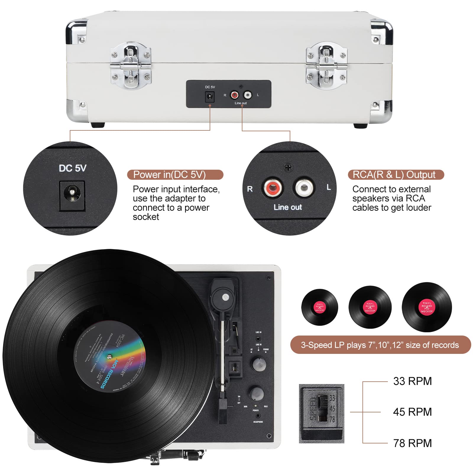 ✅️【بدون نیاز به تجهیزات اضافی】 میتواند به عنوان یک پخشکننده مستقل با بلندگوهای استریو یکپارچه استفاده شود. راهاندازی آسان، کار با آن آسان. از موسیقی با کیفیت بالا در هر زمان لذت ببرید. شامل آداپتور ۴۵ دور در دقیقه، قلم، ورودی AUX، جک هدفون ۳.۵ میلیمتری.