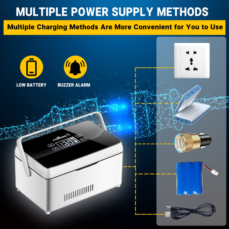 🍀 منبع تغذیه الکترونیکی بدون نیاز به کیسه یخ --- برای مدت زمان کار طولانی باتری، بهتر است دما را در فضای باز روی 4 درجه سانتیگراد تنظیم کنید. این دستگاه با ۳ باتری قابل شارژ قابل حمل که هر کدام میتوانند ۳ تا ۶ ساعت کار کنند، بستهبندی شده است. کابل USB میتواند آن را در ماشین، هتل، محل کار یا خانه شارژ کند.
