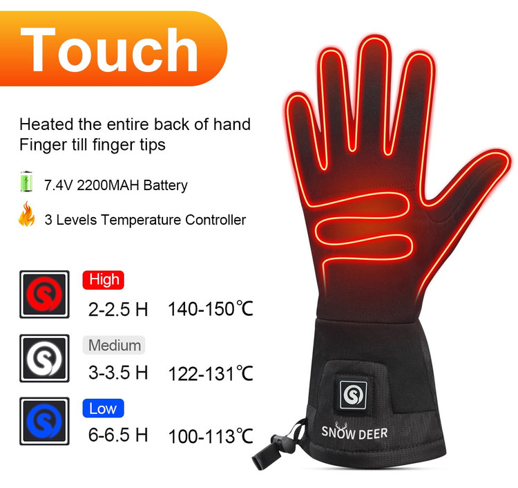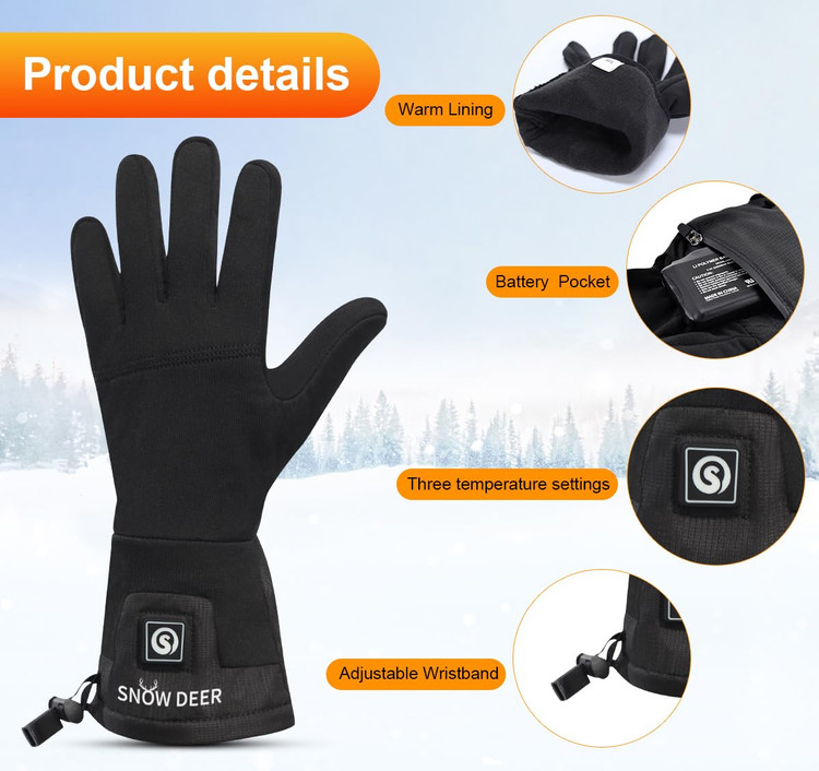 دستکشهای گرمایشی شارژی برند SNOW DEER باتری 2200 دستکش نازک سایزXXL