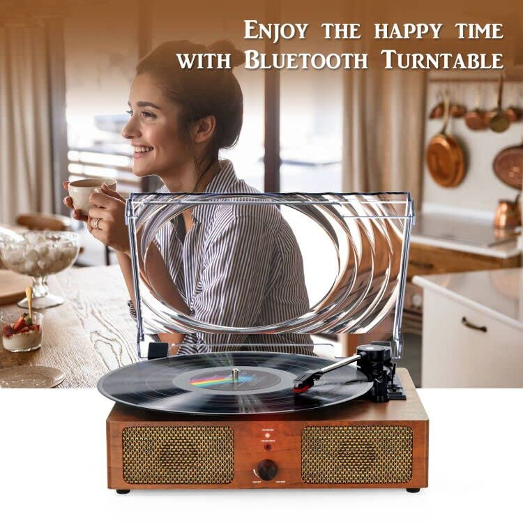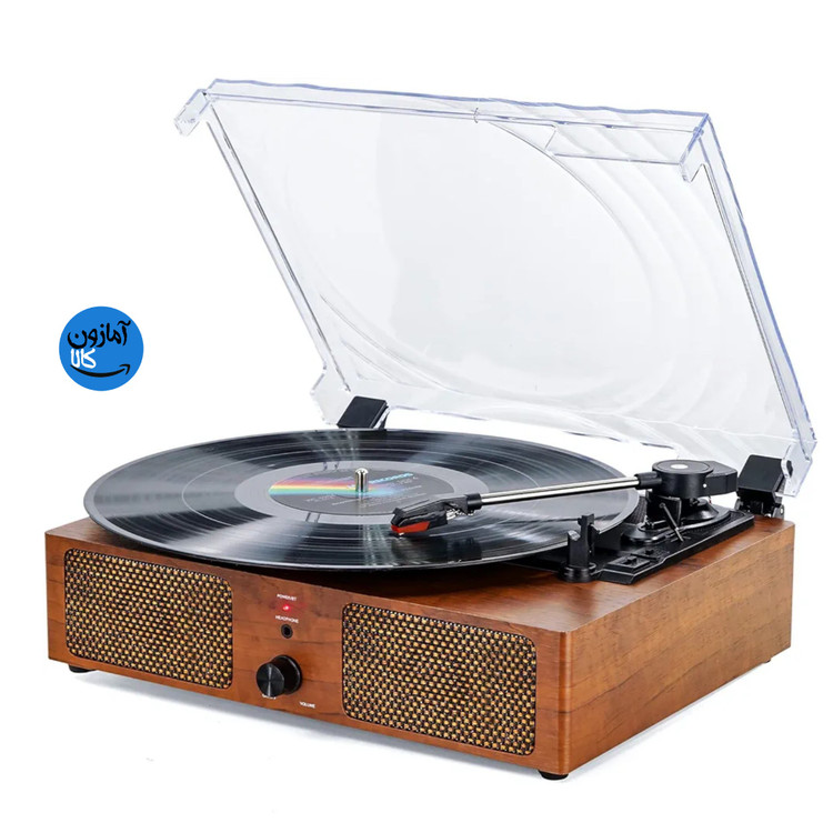 گرامافون وینیل پلیر بیسیم بلوتوث با بلندگوهای داخلی و USB، گرامافون قدیمی LP با قابلیت پخش 3 سرعته تسمهای برای دکوراسیون منزل
