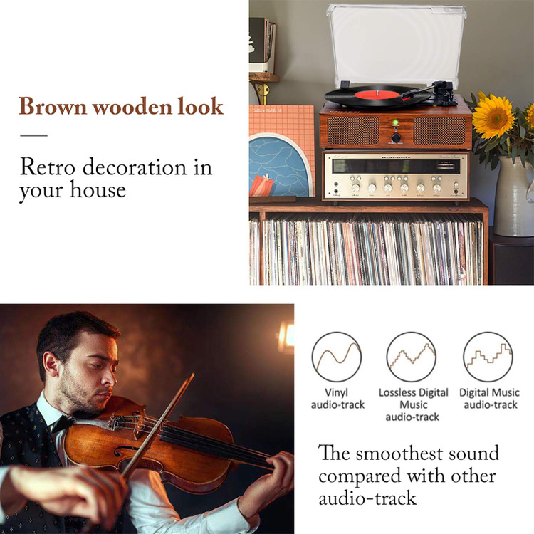 ✅️【صفحه گرامافون وینیل قدیمی】ترکیبی از مد و کلاسیک، ساخته شده از چوب قدیمی. میتوان از موسیقی روی صفحات وینیل یا به صورت دیجیتالی از طریق فناوری بیسیم مدرن لذت برد. صفحه گرامافون با پوشش گرد و غبار قابل جدا شدن برای تمیز نگه داشتن صفحه گرامافون.