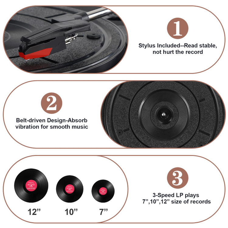 ✅️【۳ سرعت و ۳ اندازه صفحه موجود است】پشتیبانی از صفحههای گرامافون سه سرعته (۳۳-۱/۳، ۴۵ و ۷۸ دور در دقیقه)، از جمله آداپتور ۴۵ دور در دقیقه. سازگار با ۳ اندازه صفحه (۷ اینچ، ۱۰ اینچ و ۱۲ اینچ). استفاده آسان، راهاندازی و کار با آن ساده است.