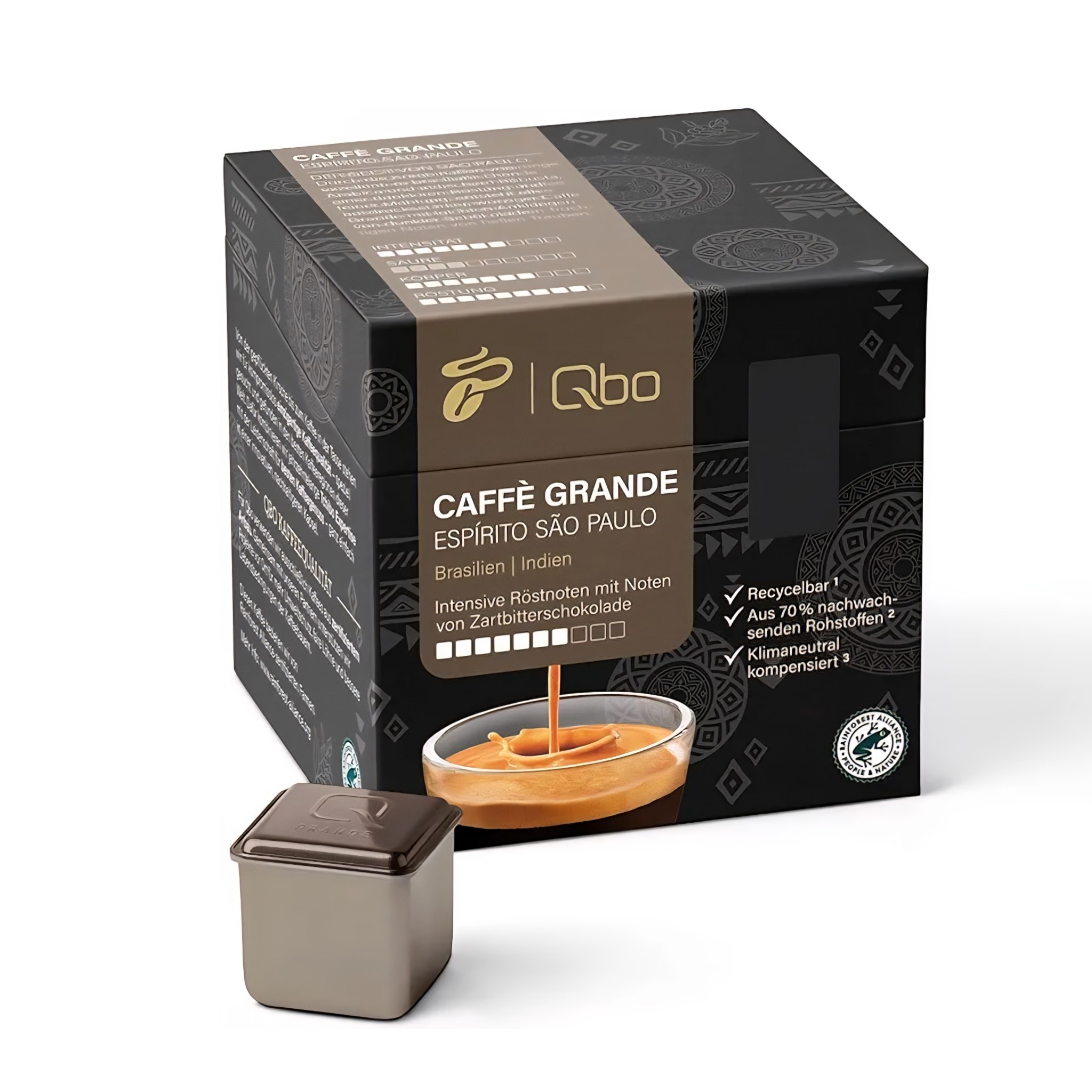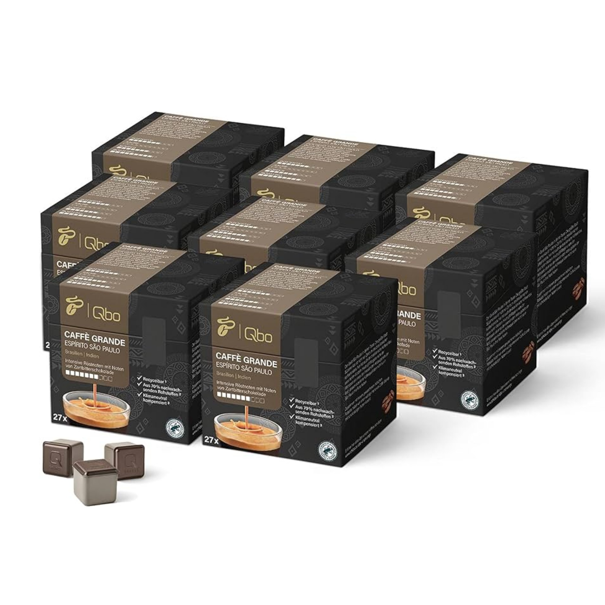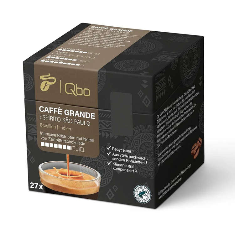کپسول قهوه ممتاز Tchibo Qbo Caffè Grande Espírito São Paulo، بسته 27 عددی (Caffè Grande، شدت 7/10، بسیار معطر)، پایدار، ساخته شده از 70٪ مواد خام تجدیدپذیر و آب و هوای خنثی