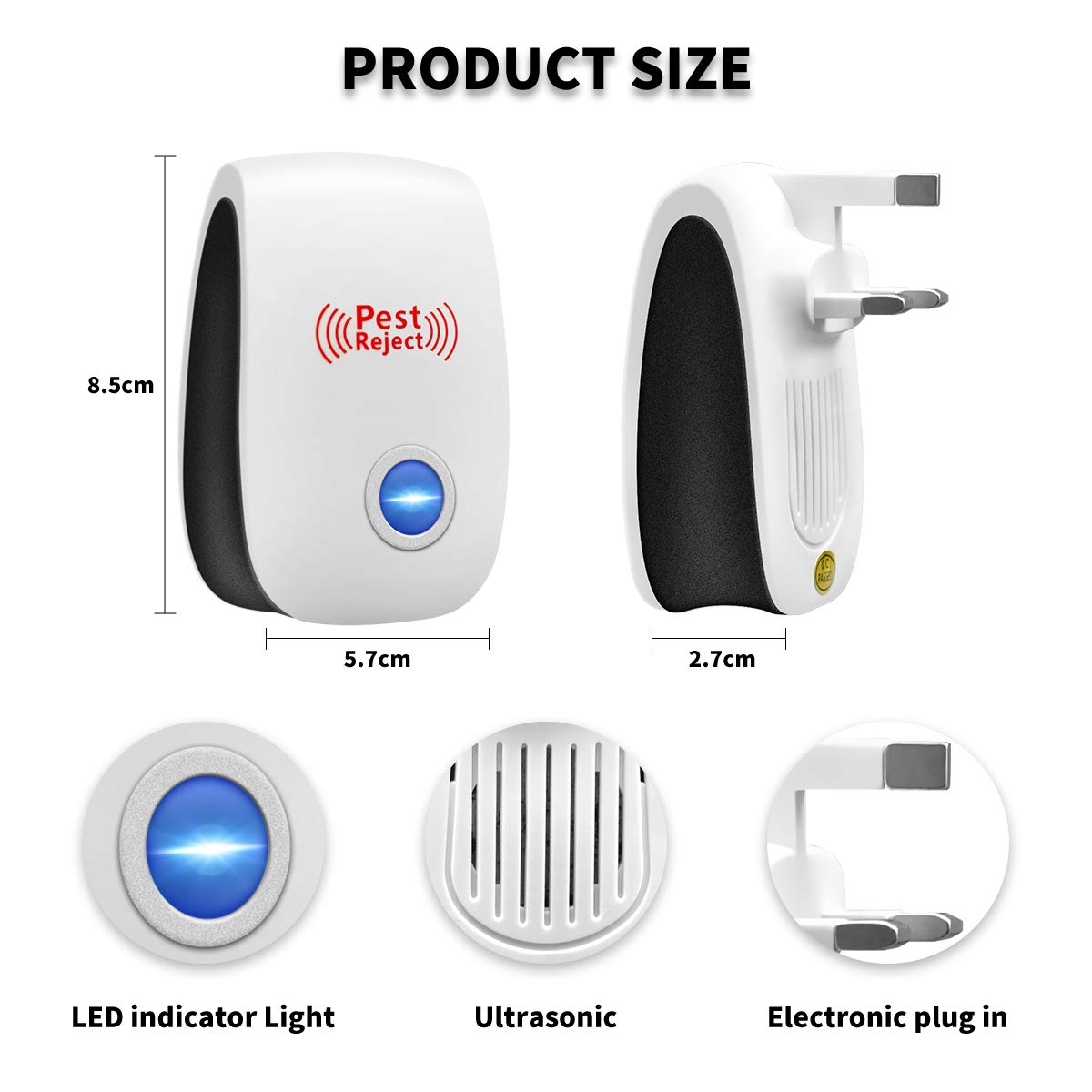 🍀 ایمن و اقتصادی: دافع شیمیایی مضر خود را دور بیندازید. دافع آفات الکترونیکی برای زنان باردار و نوزاد بیخطر است، بیبو، بیصدا و بدون تشعشع. کنترل آفات از امواج صوتی با فرکانس اولتراسونیک برای دور کردن آفات و موشها بدون کشتن آنها استفاده میکند.