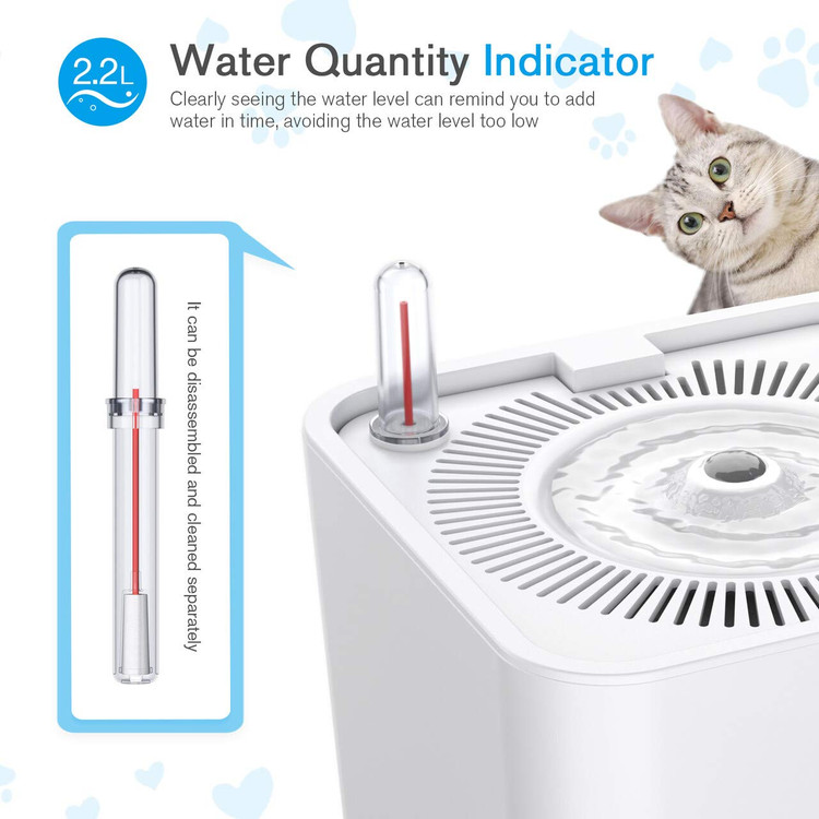 ✅️ ظرفیت 2.2 لیتر و 3 سبک نوشیدن آب، جهت 360 درجه برای نوشیدن. AC100-240V 50/60Hz0.15A، خروجی USB 5V1A، با کابل 1.45M، پمپ آب 5V/1W