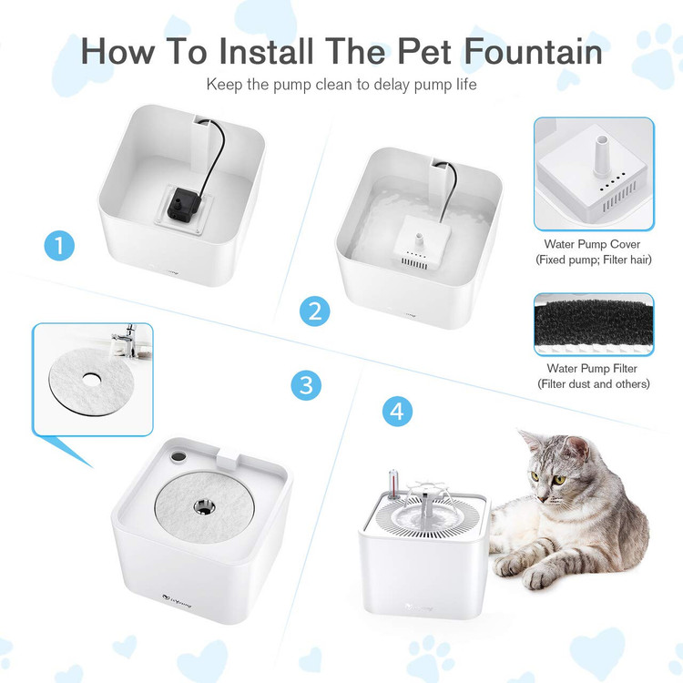 ✅️【سیستم چرخش مجدد】 فیلتراسیون سه مرحله ای موها، ناخالصی ها، بوی بد و تمیز نگه داشتن آب را از بین می برد. می تواند به دور نگه داشتن حیوانات خانگی شما از بیماری ها کمک کند. همراه با 5 فیلتر ذغالی جایگزین برای اطمینان از اینکه می توانید مرتباً آن را تعویض کنید