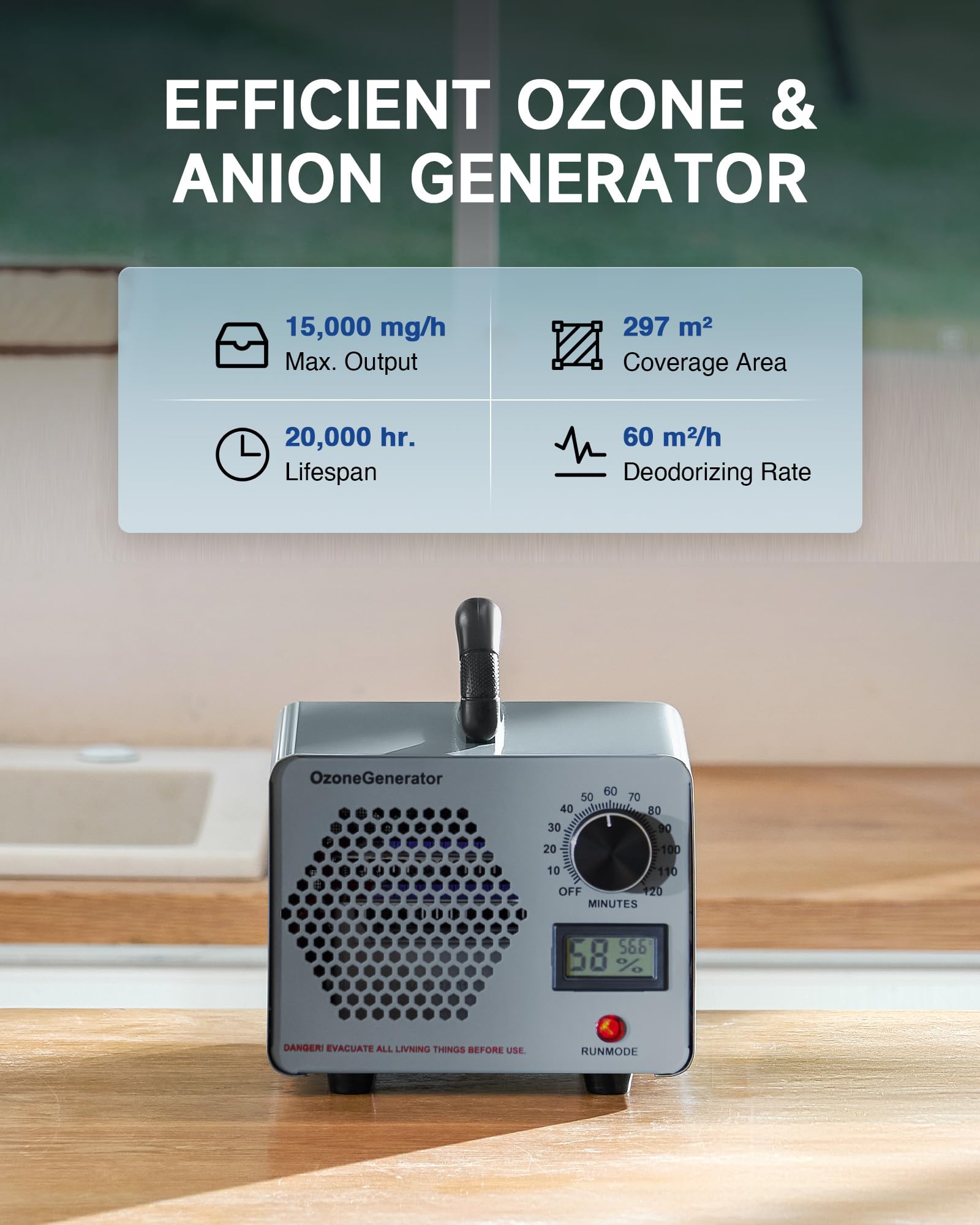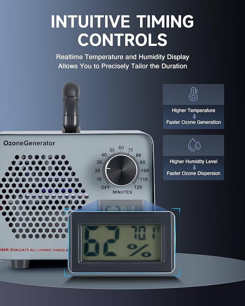 🍀 بوزدایی قدرتمند: با حداکثر تولید ازن ۲۵۰۰۰ میلیگرم در ساعت و فن ۲۸۰۰ دور در دقیقه، این دستگاه ازن میتواند فضایی تا ۲۹۵ متر مربع را به راحتی بوزدایی کند.