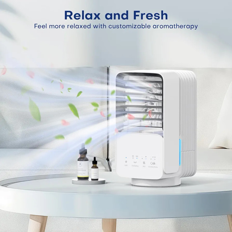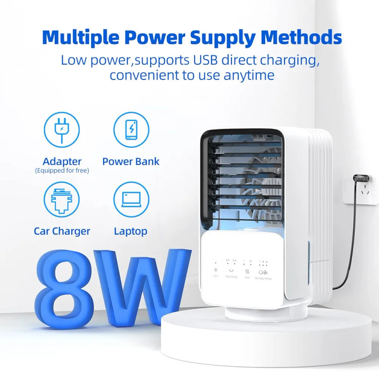 مینی کولر چرخشی 4 کاره، مه پاش مخزن آب 800 میلیلیتری،ایدهآل برای خانه و دفتر کار