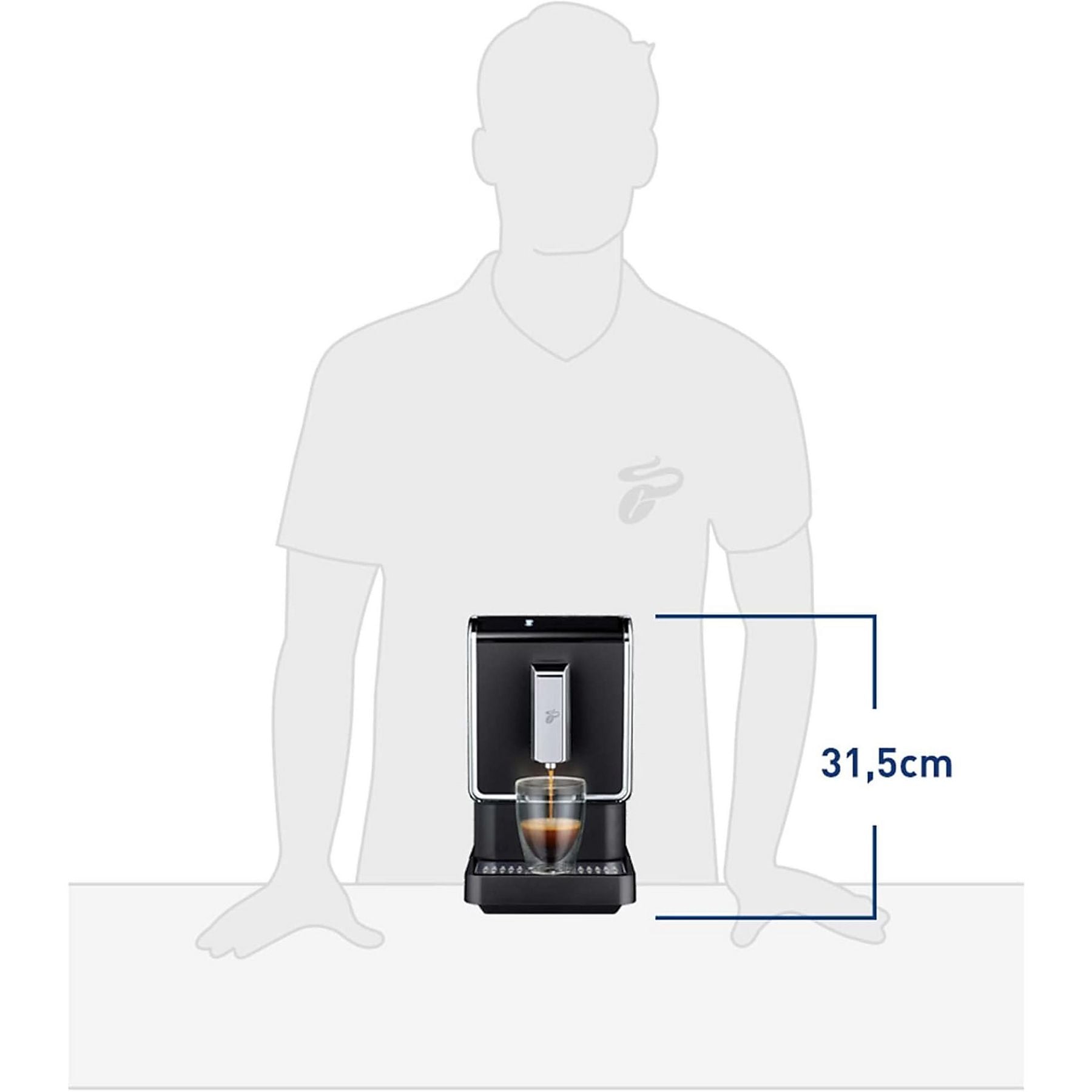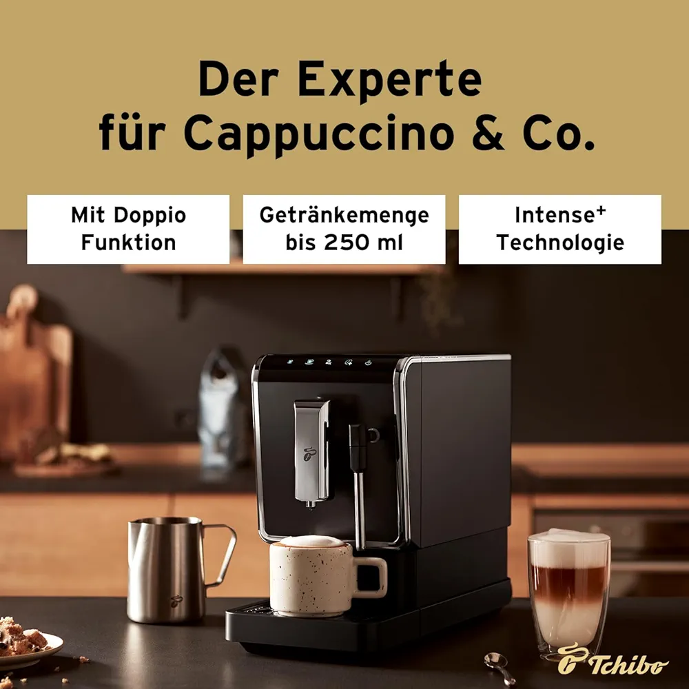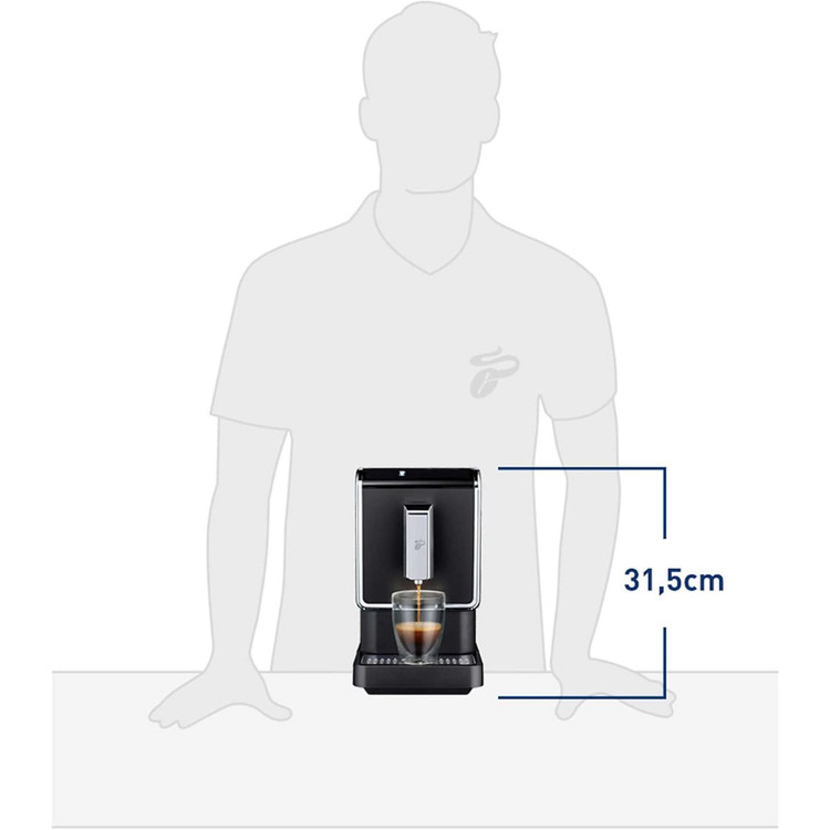 ☕️ طراحی کمحجم و قابلیت تنظیم ارتفاع: این دستگاه تمام اتوماتیک Tchibo با عرض تنها ۱۸ سانتیمتر، در هر آشپزخانهای جا میشود و دهانه فنجان با قابلیت تنظیم ارتفاع تا تقریباً ۱۵.۵ سانتیمتر، امکان استفاده از فنجانها و لیوانهای مختلف را فراهم میکند.